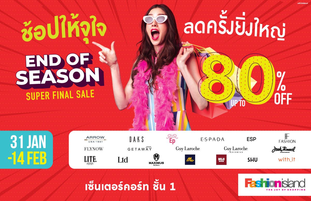 #ทวงคืนพื้นที่น้กช้อป ลดสูงสุด 80% Fashionisland SUPER FINAL SALE ที่งาน ## END OF SEASON