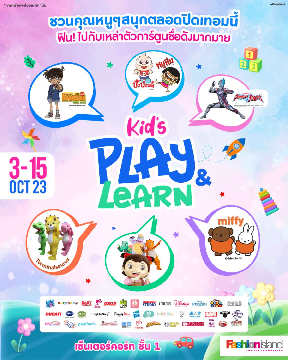 3 – 15 ต.ค. นี้!! ต้อนรับ #ปิดเทอมเติมสนุก สุดหรรษาของคุณหนู ๆ กับงาน ## Kids’ Play & Learn ## สนุกเล่น สนุกเรียนรู้ แบบไร้ขีดจำกัด ใกล้ชิดกับเหล่าตัวการ์ตูนชื่อดัง พร้อมกิจกรรมและโปรโมชั่นหลากหลาย พร้อมทั้งชวนช้อปสินค้าสำหรับเด็กจากแบรนด์ชั้นนำ ลดสูงสุด 70%