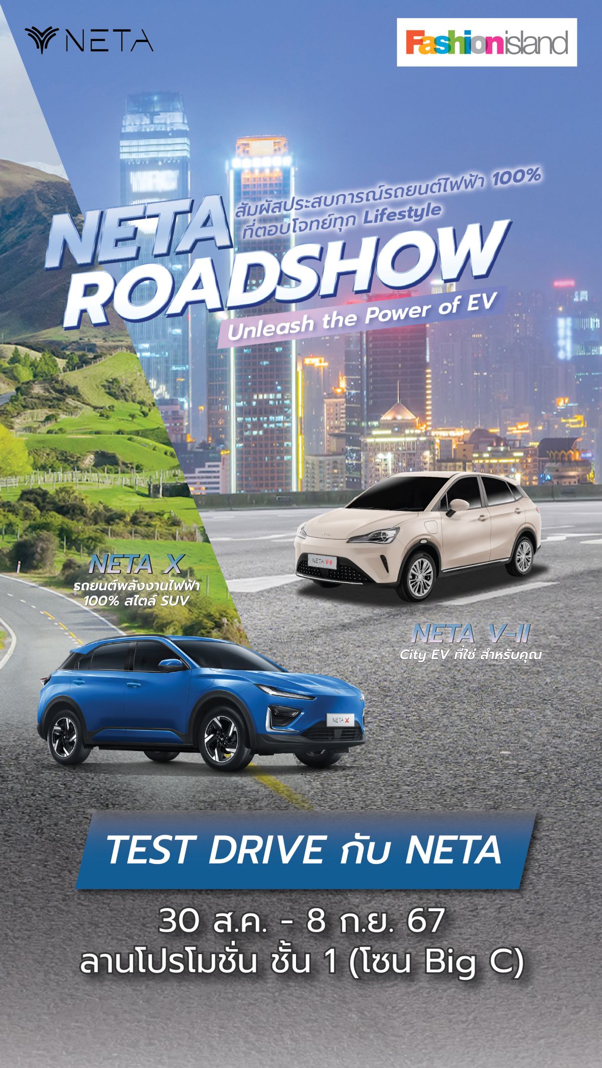เชิญร่วมทดลองขับรถยนต์ ได้ที่บูท NETA ลานโปรโมชั่น ชั้น 1 (โซน Big C)