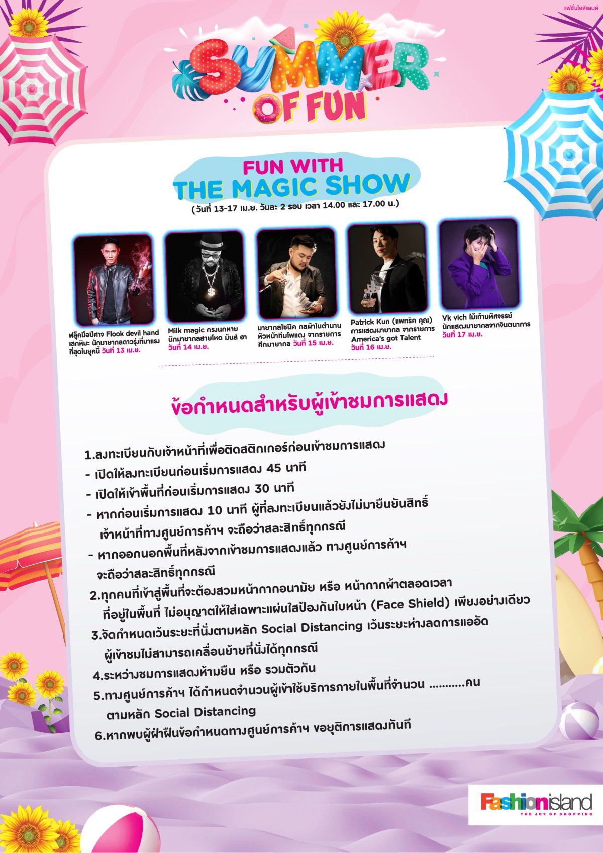- แจกฟรีไอศกรีม 500 โคน เพียงแชะ & แชร์ ถ่ายภาพกับมุมโปรด ภายในงาน Summer of fun โพสต์ติด #Summeroffun2022 #Fashionisland เช็คอิน และตั้งค่าสาธารณะ