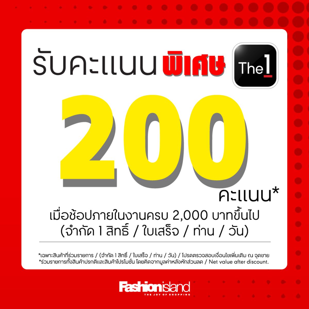 - รับคะแนนพิเศษ The1 Card 200 คะแนน เมื่อซื้อสินค้าในงานครบ 2,000 บาทขึ้นไป