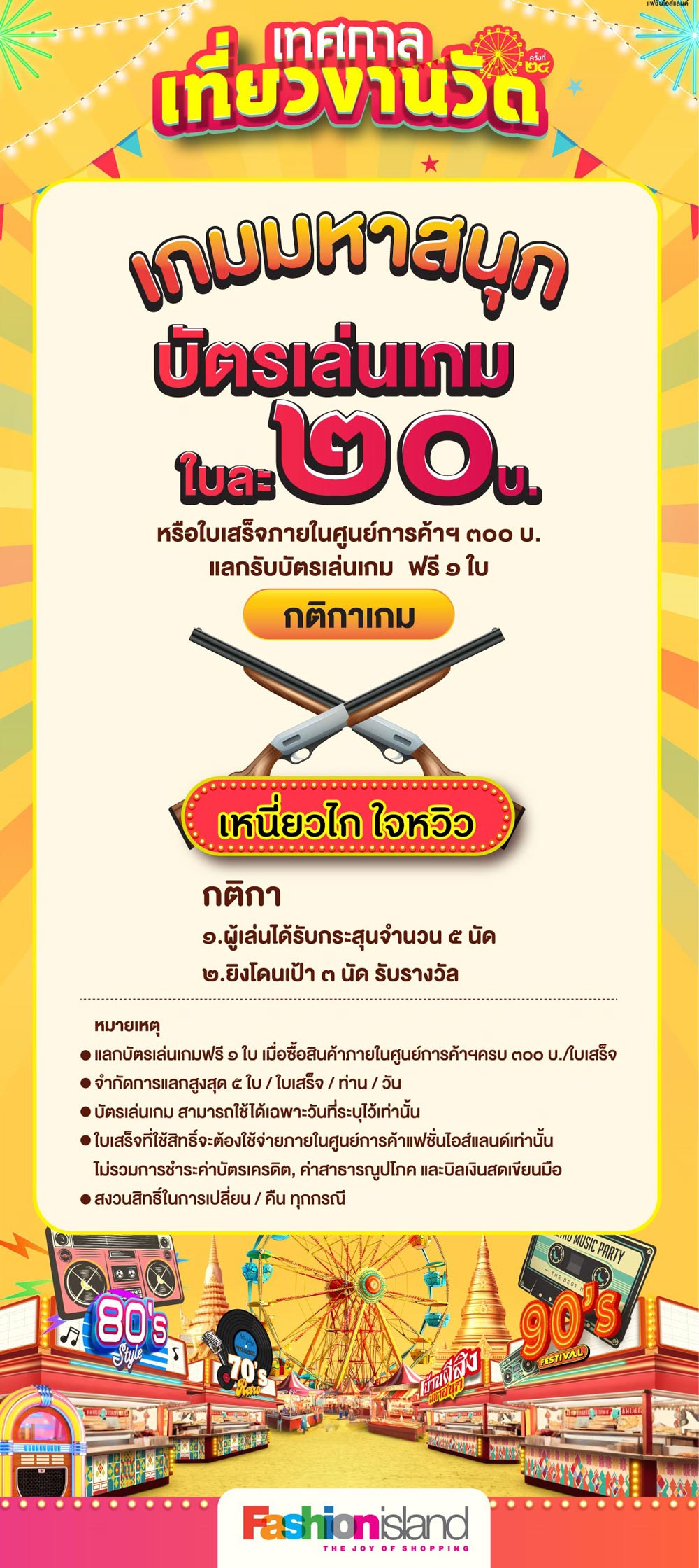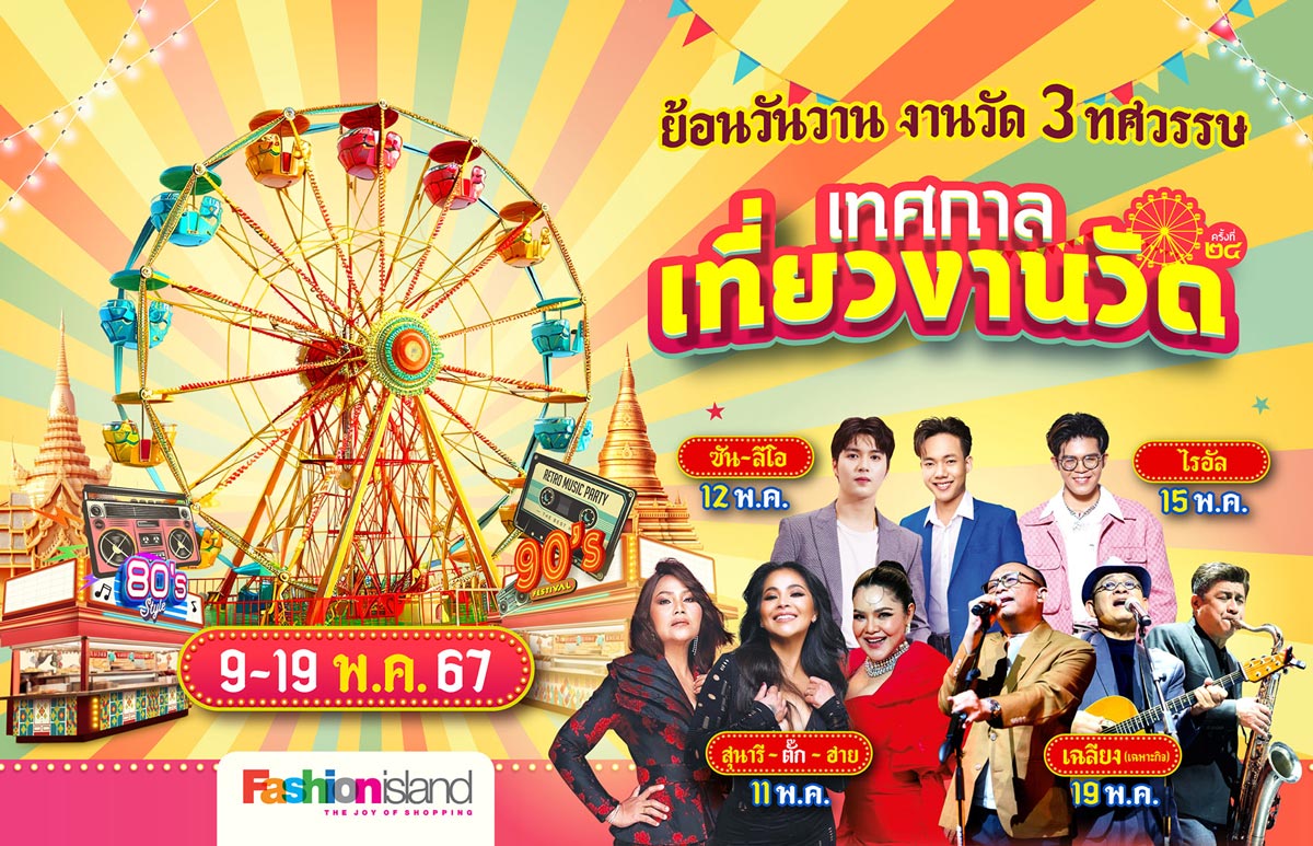 เริ่มวันที่ 9 – 19 พฤษภาคมนี้ที่ Fashionisland พร้อมพาคุณสนุกทะลุมิติ ย้อนวันวานไปกับงานวัด 3 ทศวรรษ ยุค 70s 80s และ 90s งานวัดสุดปังโด่งดังระดับตำนาน 1 ปีมีเพียง 1 ครั้ง ยืนหนึ่งในแดนสยามของเเท้ต้องที่แฟชั่นไอส์เเลนด์ เต็มอิ่ม จุใจ ไปกับมนต์เสน่ห์ที่จะทำให้คุณตราตรึงใจมิรู้ลืม