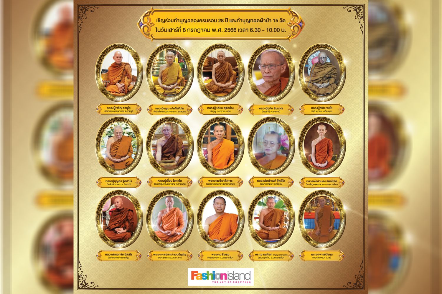 เชิญร่วมทำบุญฉลองครบรอบ 28 ปี และทำบุญทอดผ้าป่า 15 วัด ในวันเสาร์ที่ 8 กรกฎาคม พ.ศ. 2566 เวลา 6.30 - 10.00 น.