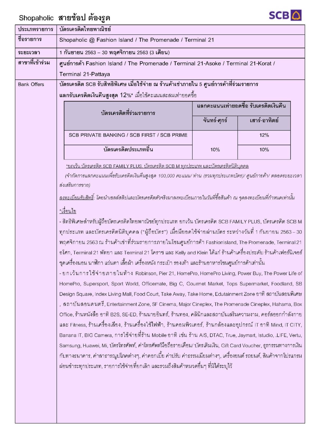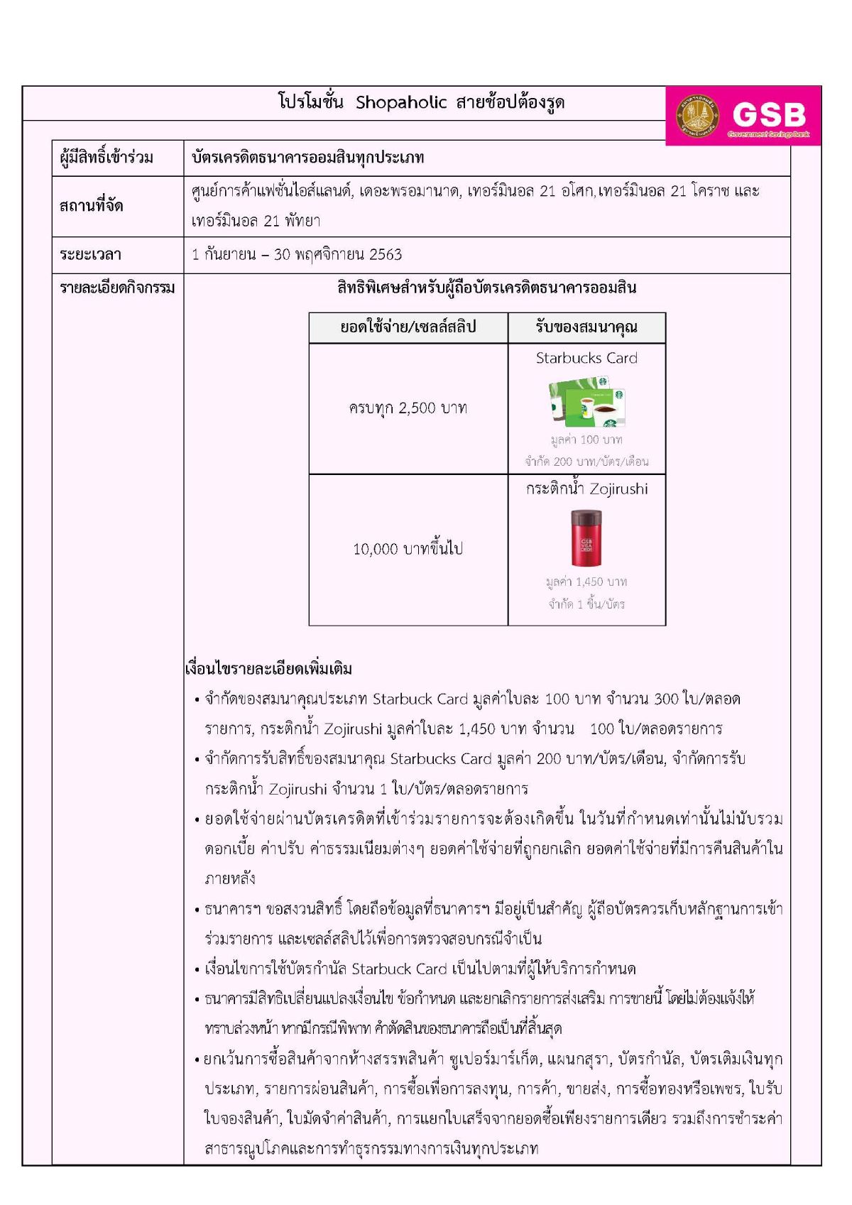 #ช้อปปั๊บรับคุ้ม #Fashionisland #Promotion #Shopaholic #สายช้อปต้องรูด #โปรโมชั่น #บัตรเครดิต #GSB #SCB #TMB #Thanachart #Starbucks #Zojirushi
