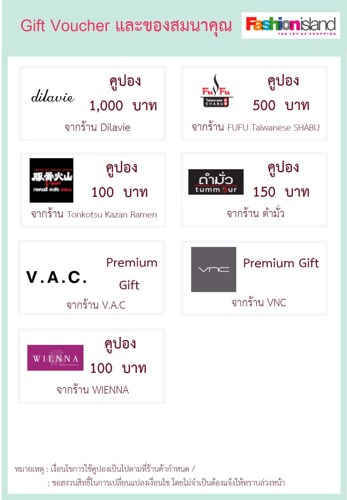* โปรดตรวจสอบเงื่อนไข และรายละเอียดโปรโมชั่นที่ เคาน์เตอร์ประชาสัมพันธ์ชั้น 1 ศูนย์การค้าแฟชั่นไอส์แลนด์