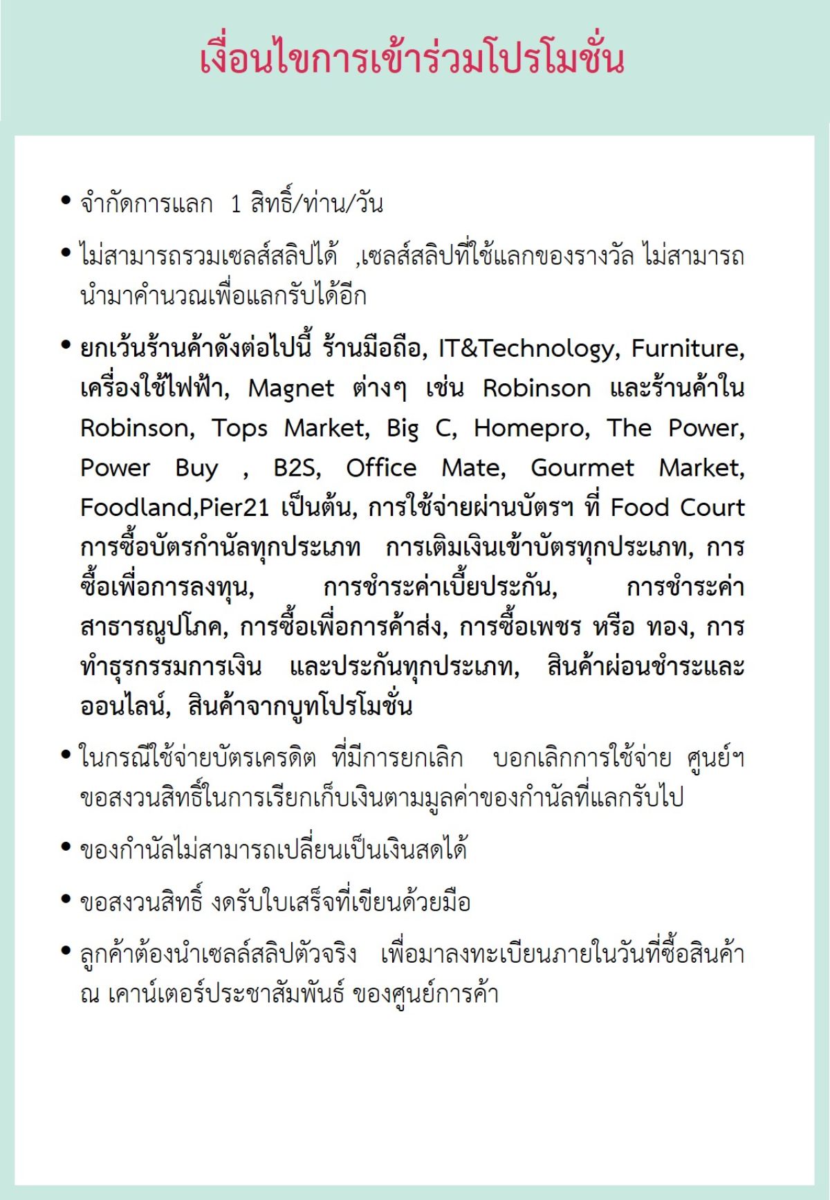 • ต่อ 1 ครบ 1,500 บาท รับคูปองแทนเงินสด หรือของสมนาคุณมากมาย
