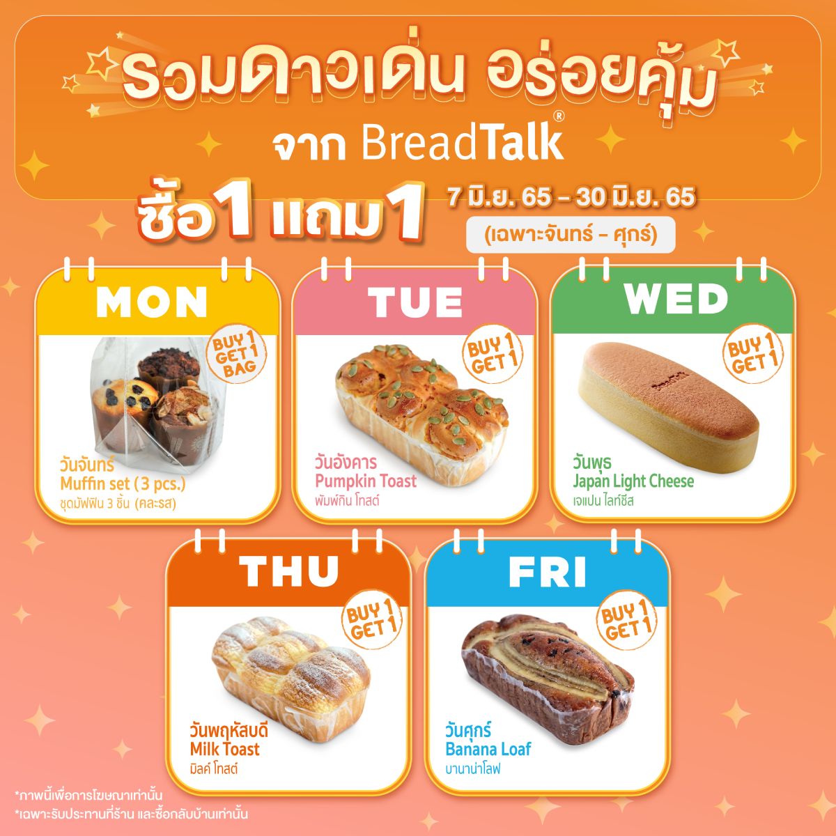 ได้เวลาดาวเด่นเฉิดฉาย ต้อนรับเดือนที่ดาวเต็มฟ้า กับโปรโมชั่น 1 แถม 1 ประจำวันจาก BreadTalk