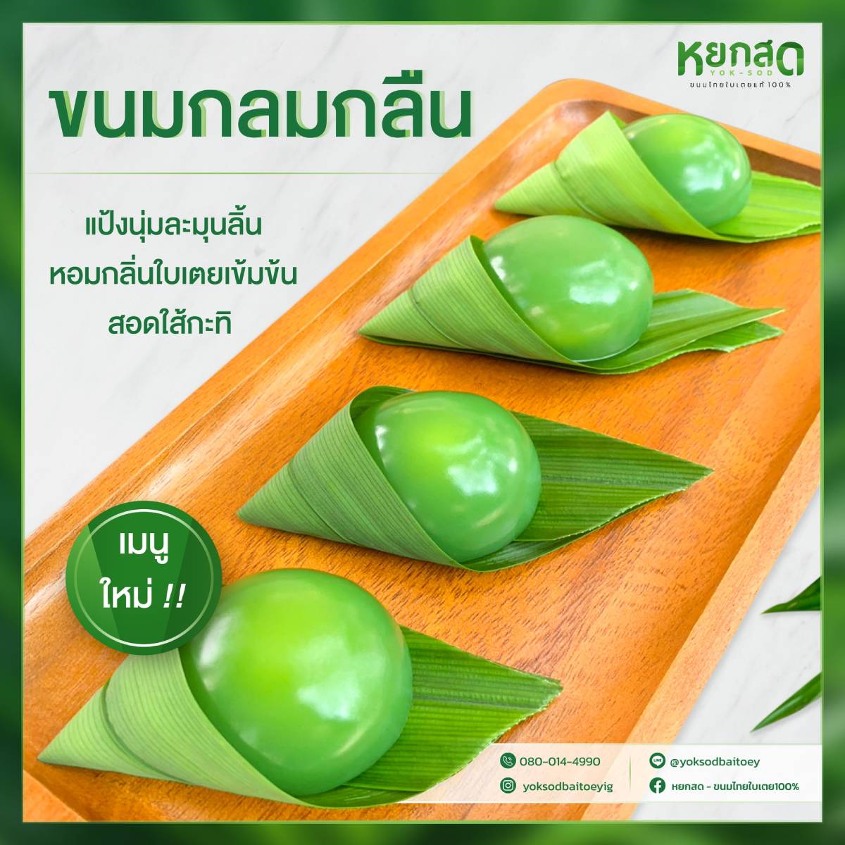 ขนมกลมกลืน อันแน่นด้วยใบเตยตามแบบฉบับหยกสด แป้งใบเตยนุ่มละมุนลิ้น หอมกลิ่นใบเตยตั้งแต่ยังไม่เปิดกล่อง!!