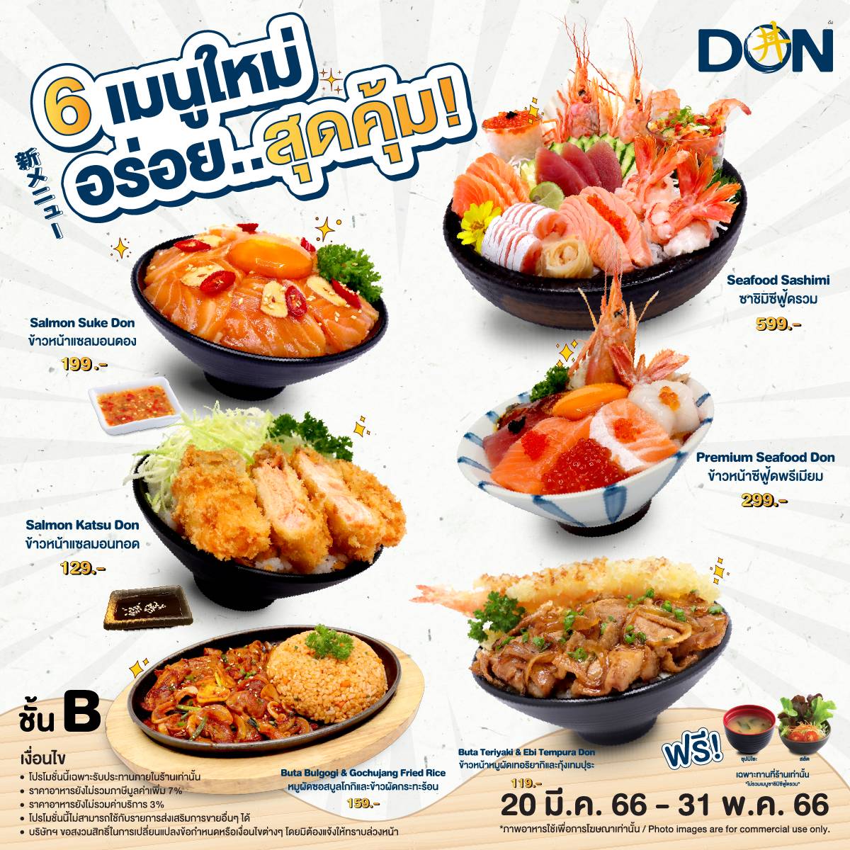 DON (ด้ง) เปิดตัวเมนูใหม่ล่าสุด! จัดเต็มทั้ง 6 เมนู ให้ทุกคนมาสัมผัสความอร่อยในสไตล์ญี่ปุ่น ในราคาเริ่มต้นเพียง 119 บาท และพิเศษอีกขั้น ทุกเซ็ตเสิร์ฟพร้อมซุปมิโซะและสลัดเมื่อทานที่ร้านด้วยนะ! (ยกเว้นเมนูซาชิมิซีฟู้ดรวม)