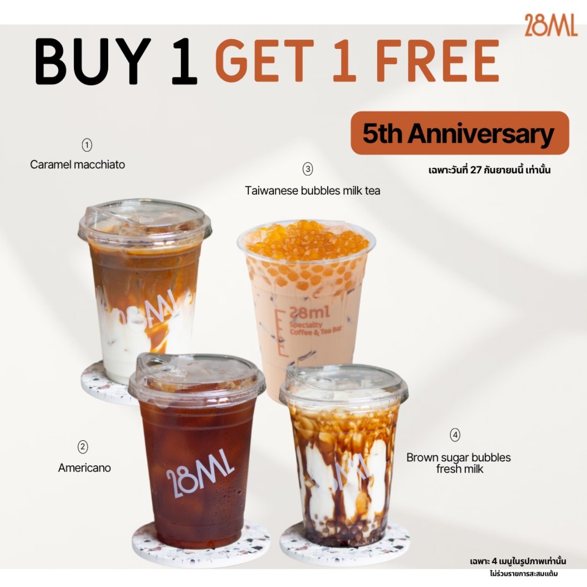 #28ML #FashionIsland #ครบรอบ5ปี #ซื้อ1แถม1 #CaramelMacchiato #Americano #BrownSugarFemeBubble #TaiwanMilkTea #BubbleTeaLovers