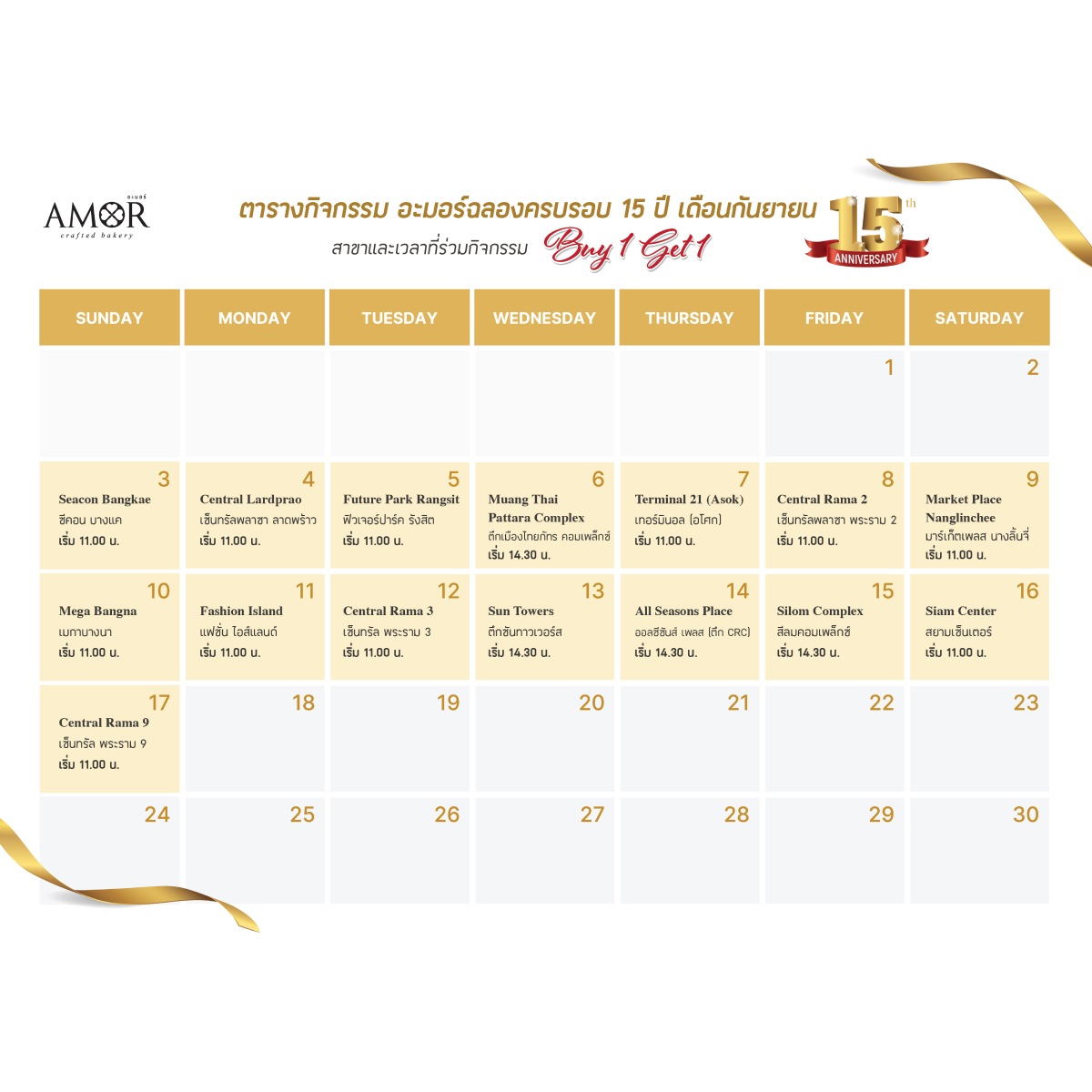 ภายใต้ชื่องาน “AMOR 15th Anniversary Buy 1 Get 1” ซึ่งเป็นกิจกรรมสำหรับผู้ที่เป็นสมาชิกอะมอร์ เพื่อเป็นการขอบคุณลูกค้าที่คอยสนับสนุนเรามาโดยตลอด