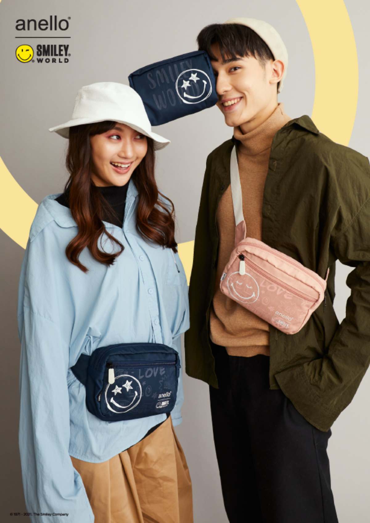 คอลเลคชั่นใหม่ล่าสุดที่ร่วมงานกับไอคอนสุดฮิตที่ใครๆ ก็รู้จักหน้ายิ้ม สไมลีย์ เวิล์ด (Smiley World) พร้อมส่งมอบความสุขให้ทุกๆ คน โดยได้ออกแบบผ่านลายปรินท์รูปอิโมติคอนหน้ายิ้มหลากหลายอารมณ์ ในคอนเซปต์ Art Abstract เป็นลายเส้น Sketchy สื่อถึงความสนุกสนาน ส่งพลังความสุขผ่านกระเป๋า anello x Smiley ซึ่งได้ออกแบบผ่านกระเป๋ารุ่นยอดนิยม 5 สไตล์ด้วยกัน ได้แก่ Mouthpiece Backpack, Daypack, Shoulder Bag , Crossbody Bag และ Pouch กระเป๋าอเนกประสงค์ขนาดเล็กที่สามารถพกพาไปได้ทุกที่