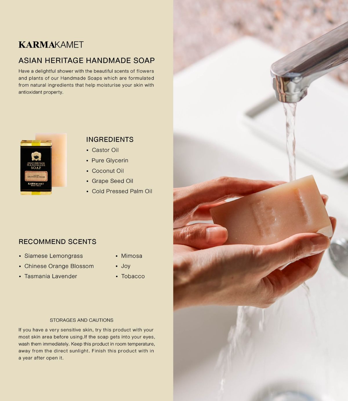 คุณค่าของสารสกัดธรรมชาติจากพืชพิ้นถิ่น ผสานกับกลิ่นหอมอันเป็นเอกลักษณ์จากดอกไม้ และพืชพรรณ อัดแน่นอยู่ในสบู่หอมทำมือสูตรดั้งเดิมของ Karmakamet ด้วยกระบวนการผลิตที่ไม่ผ่านความร้อน หรือการหีบเย็น (Cold Press) ที่เราพิถีพิถันในทุกกรรมวิธีเพื่อคงคุณค่าและคุณภาพของน้ำมันสกัดอย่างเต็มที่