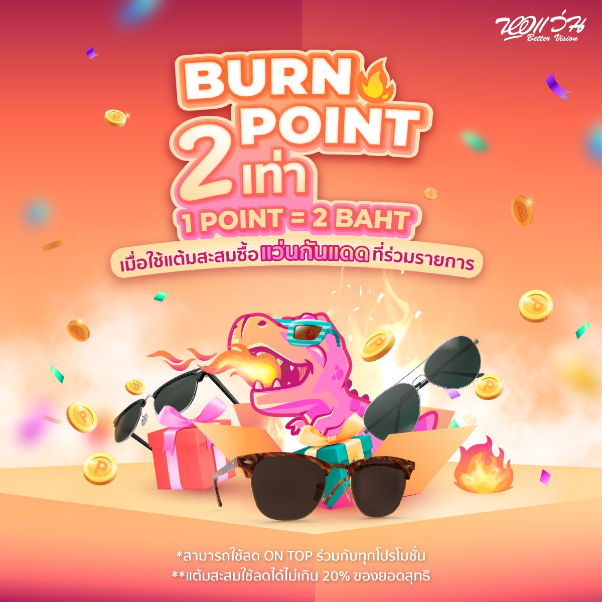 เทศกาล Burn Point เบิร์นได้ถึง 2 เท่า พิเศษ 1 คะแนนสะสม = 2 บาท
