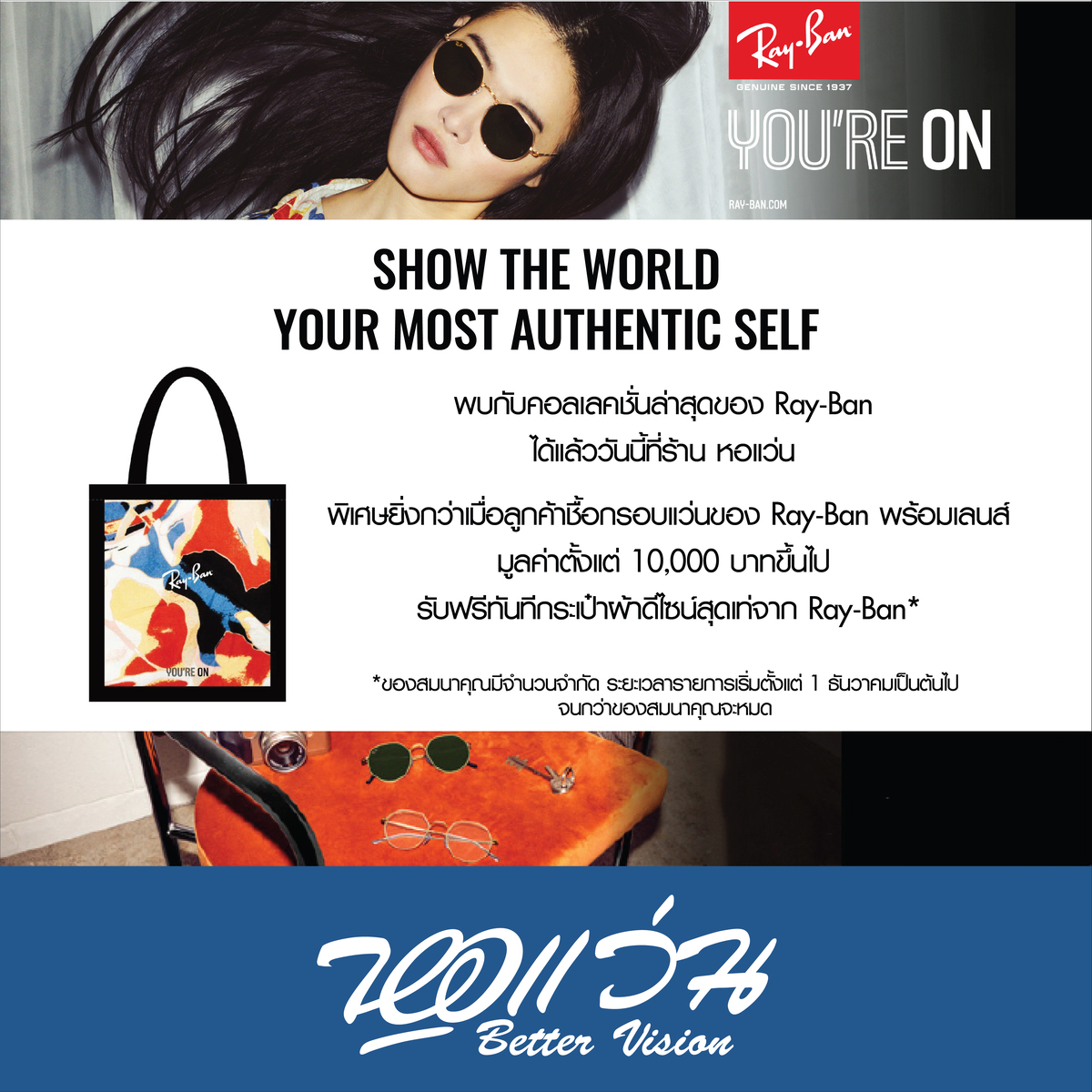 · เมื่อซื้อกรอบแว่น Ray Ban พร้อมเลนส์ มูลค่าตั้งแต่ 10,000 บาทขึ้นไป รับฟรีทันที *กระเป๋าผ้าดีไซน์สุดเท่จาก Ray Ban