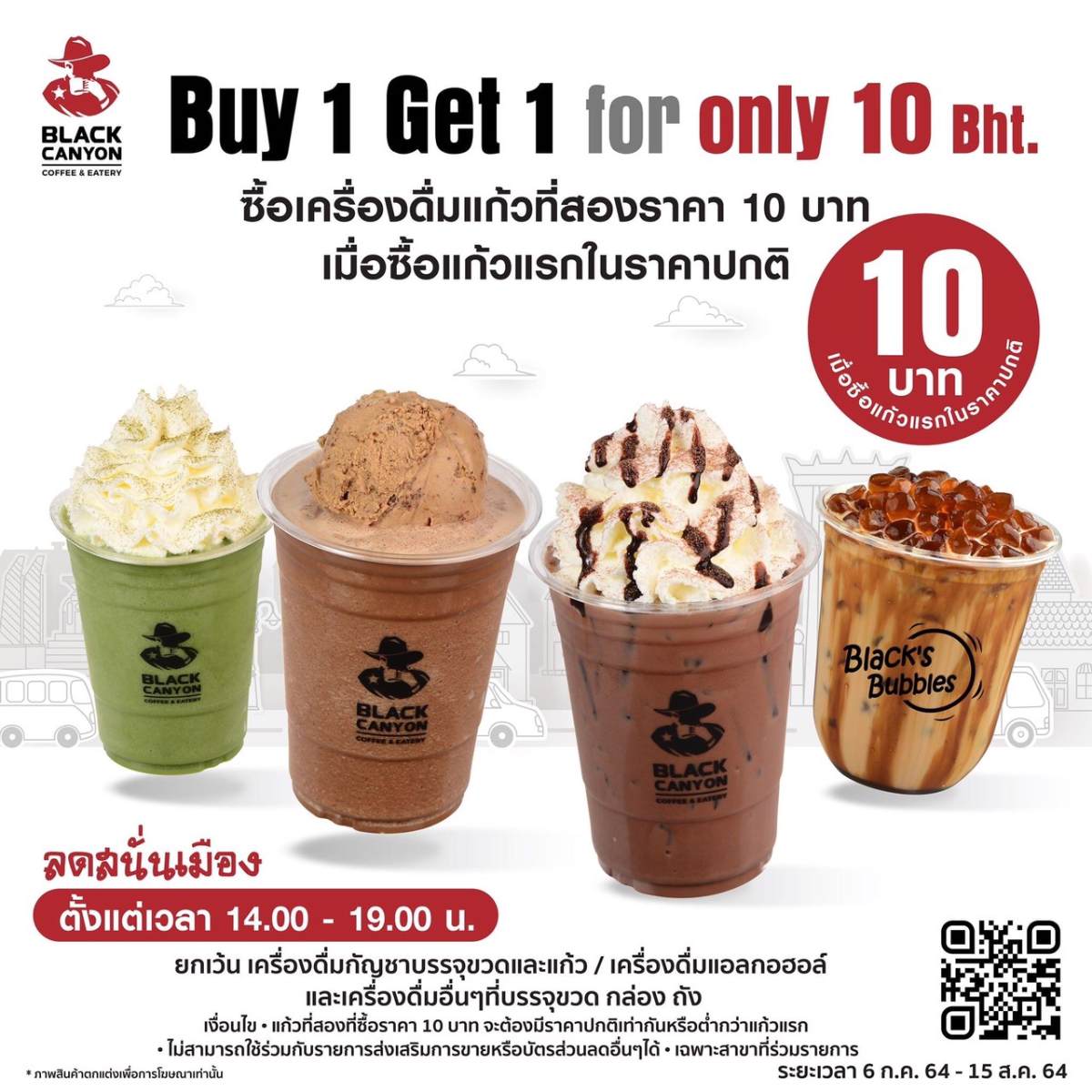 เครื่องดื่มแก้วที่สอง ราคา 10 บาท เมื่อซื้อแก้วแรกในราคาปกติ