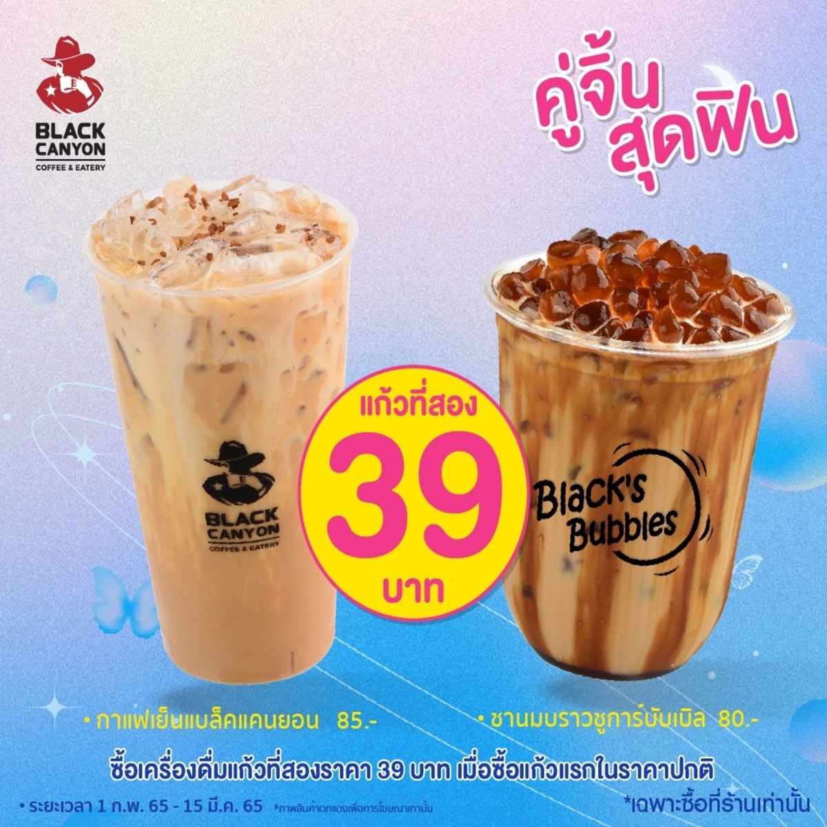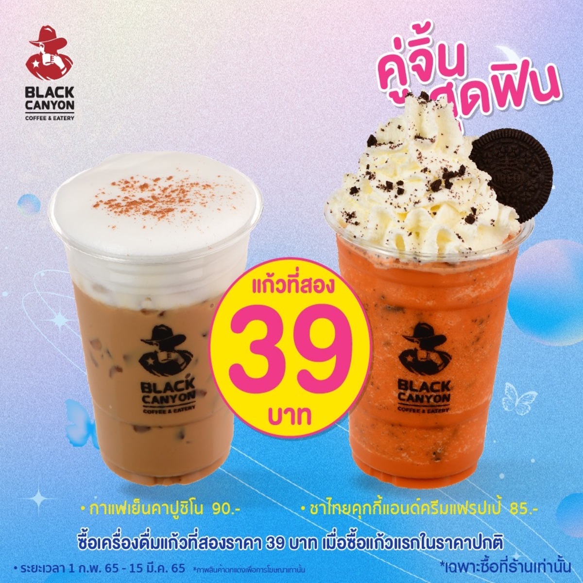 อร่อยกับเครื่องดื่มเมนูชื่นชอบแก้วที่สอง ราคา 39 บาท
