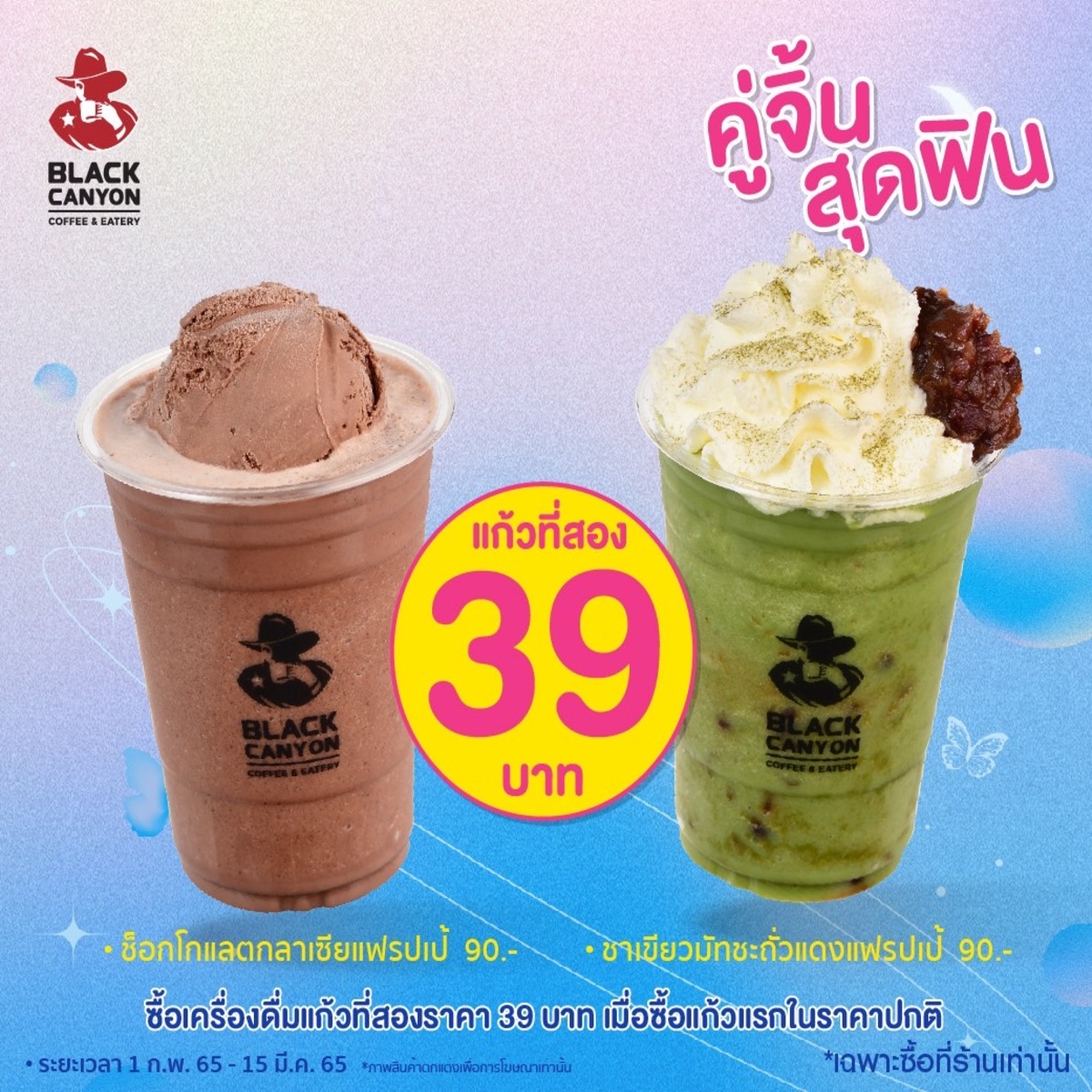 อร่อยกับเครื่องดื่มเมนูชื่นชอบแก้วที่สอง ราคา 39 บาท