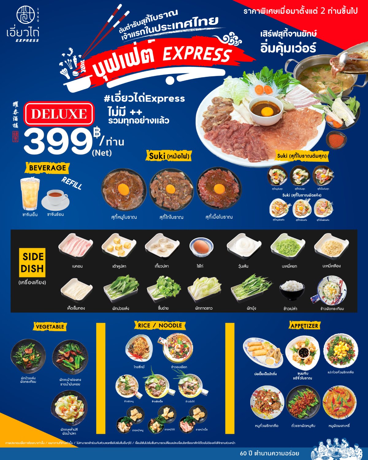 บุฟเฟ่ต์สุกี้ express ราคาใหม่ 399 Net รวมน้ำ ทานเล่นเครื่องเคียง สุกี้เนื้อ หมู ไก่เติมได้ไม่อั้น