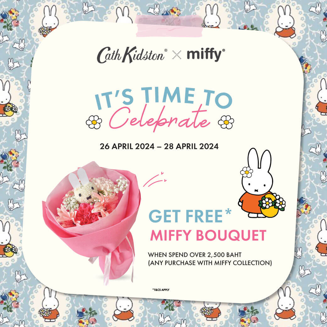รับฟรี* Miffy Bouquet เมื่อช็อปไอเทมใด ๆ ในคอลเลกชัน Miffy อย่างน้อย 1 ชิ้น และมียอดสุทธิครบ 2,500 บาท
