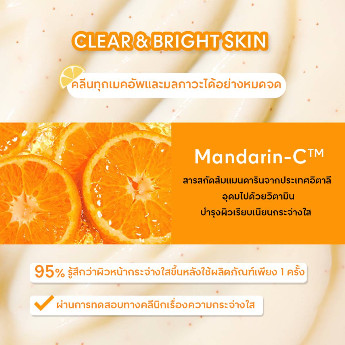• Clean it Zero Brightening Peeling Gel สครับเนื้อเนียนละเอียด ช่วยผลัดเซลล์ผิวอย่างอ่อนโยน พร้อมบำรุงผิวเรียบเนียน กระจ่างใส ด้วย Mandarin-C™ และ Vitamin Capsules