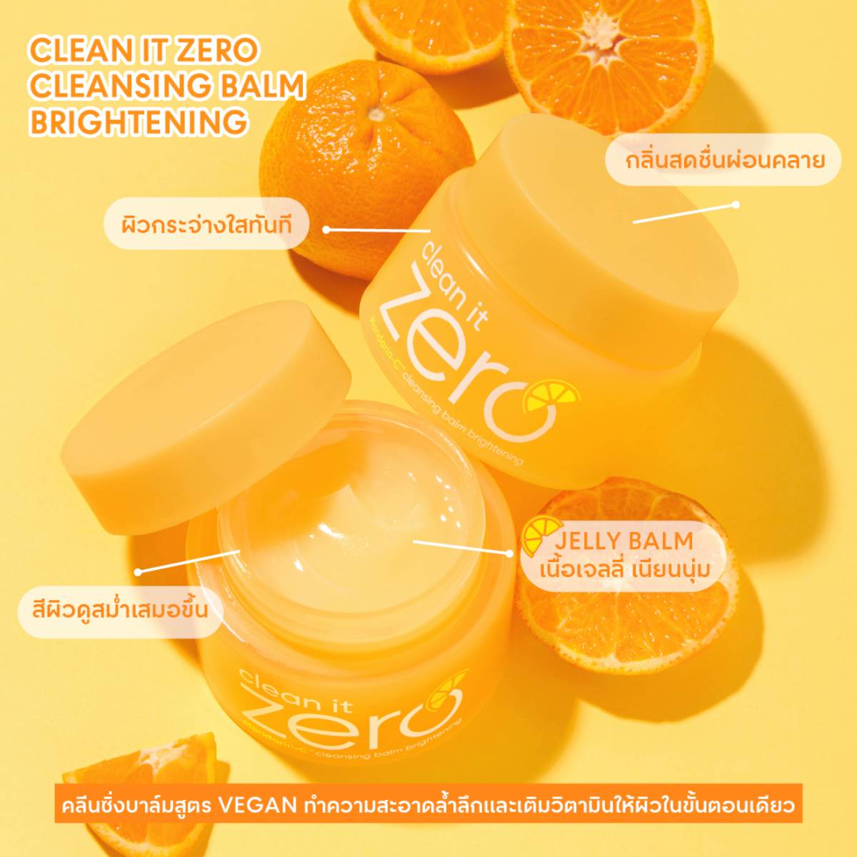 • Clean It Zero Mandarin-C Brightening คลีนซิ่งเนื้อเจลลี่ คลีนทุกเมคอัพได้หมดจด ทำความสะอาดอย่างล้ำลึก และเติมวิตามินให้ผิวในครั้งเดียว!