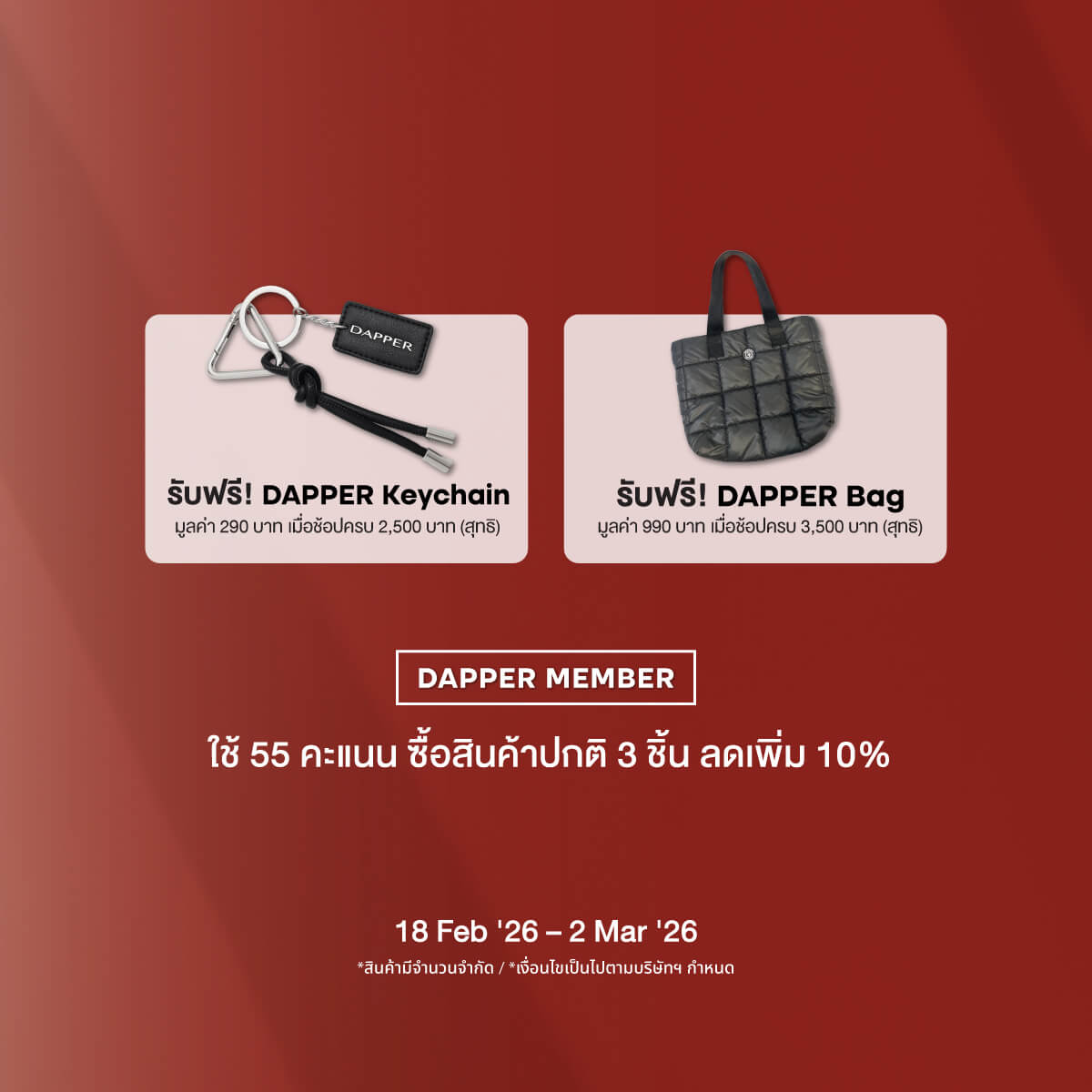 ช้อปครบ 2,500 บาท(สุทธิ) รับฟรี DAPPER Key Chain มูลค่า 290 บาท*