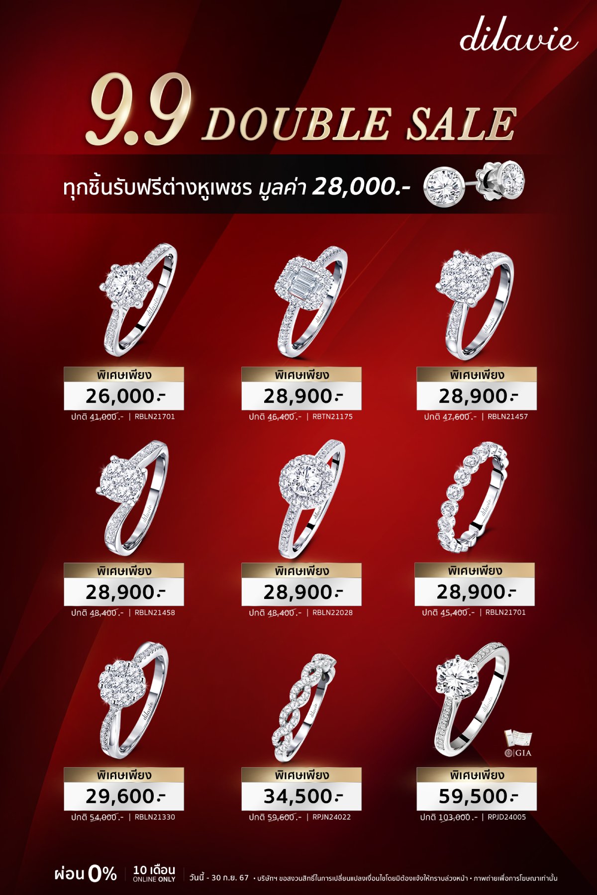 9.9 Double sale ทั้งลด ทั้งแถม ซื้อแหวนแถมฟรีต่างหูเพชร