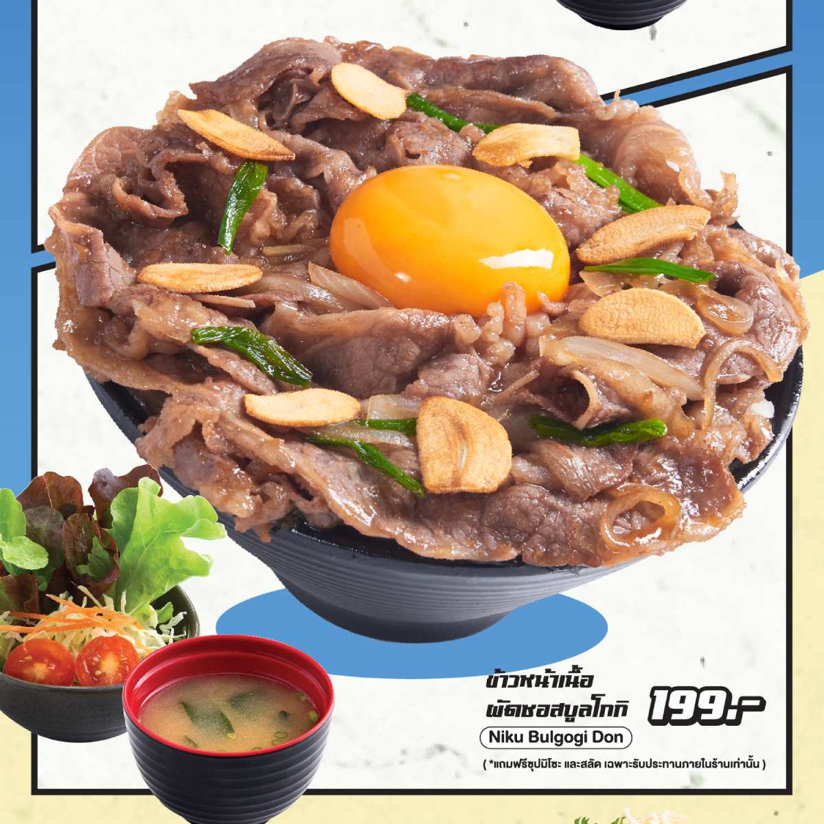 ข้าวหน้าเนื้อผัดซอสบูลโกกิสูตรเฉพาะ ผัดจนซอสซึมเข้าตัวเนื้อ ทานพร้อมกับไข่แดงดิบคือฟินสุดๆ - ชุดปีกไก่ทอดซอสนัมบัง (Chicken Nanban Set) ราคา 129.-