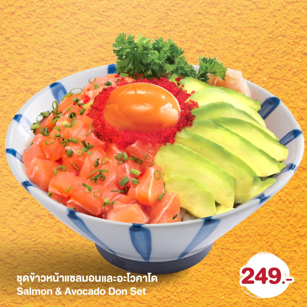 - ชุดข้าวหน้าเเซลมอนและอะโวคาโด 249.-