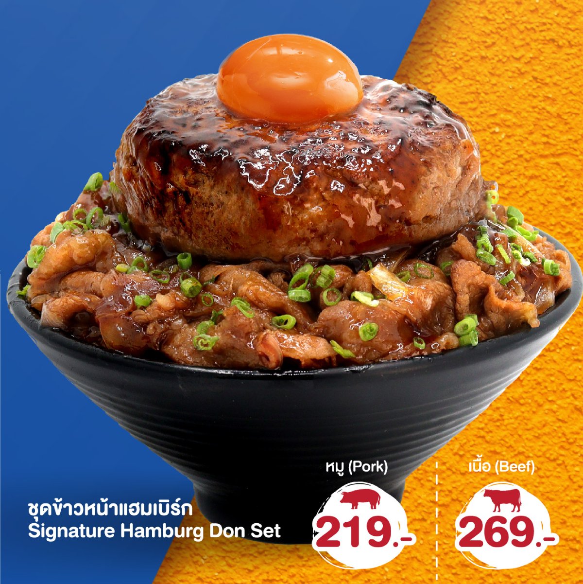 - ชุดข้าวหน้าหมูแฮมเบิร์ก 219.-