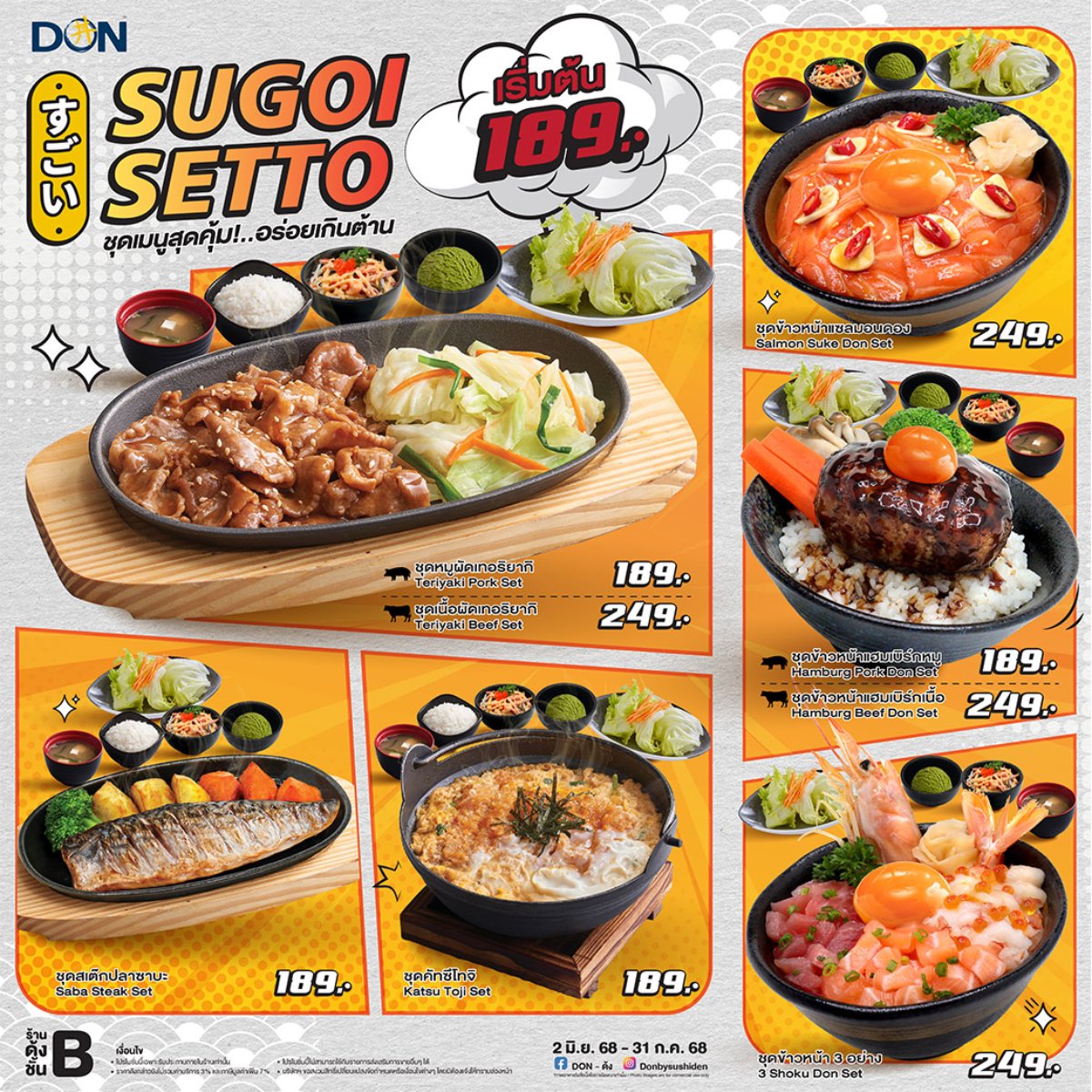 นาทีนี้ คุ้มที่สุด ต้องที่ DON เท่านั้น เซ็ตเมนูสุดคุ้ม ที่คุณจะต้องร้องว้าว พบกับ “DON SUGOI SETTO” เริ่มต้นเพียง 189.- เซ็ตสุดคุ้ม มีให้เลือกหลากหลายเมนู