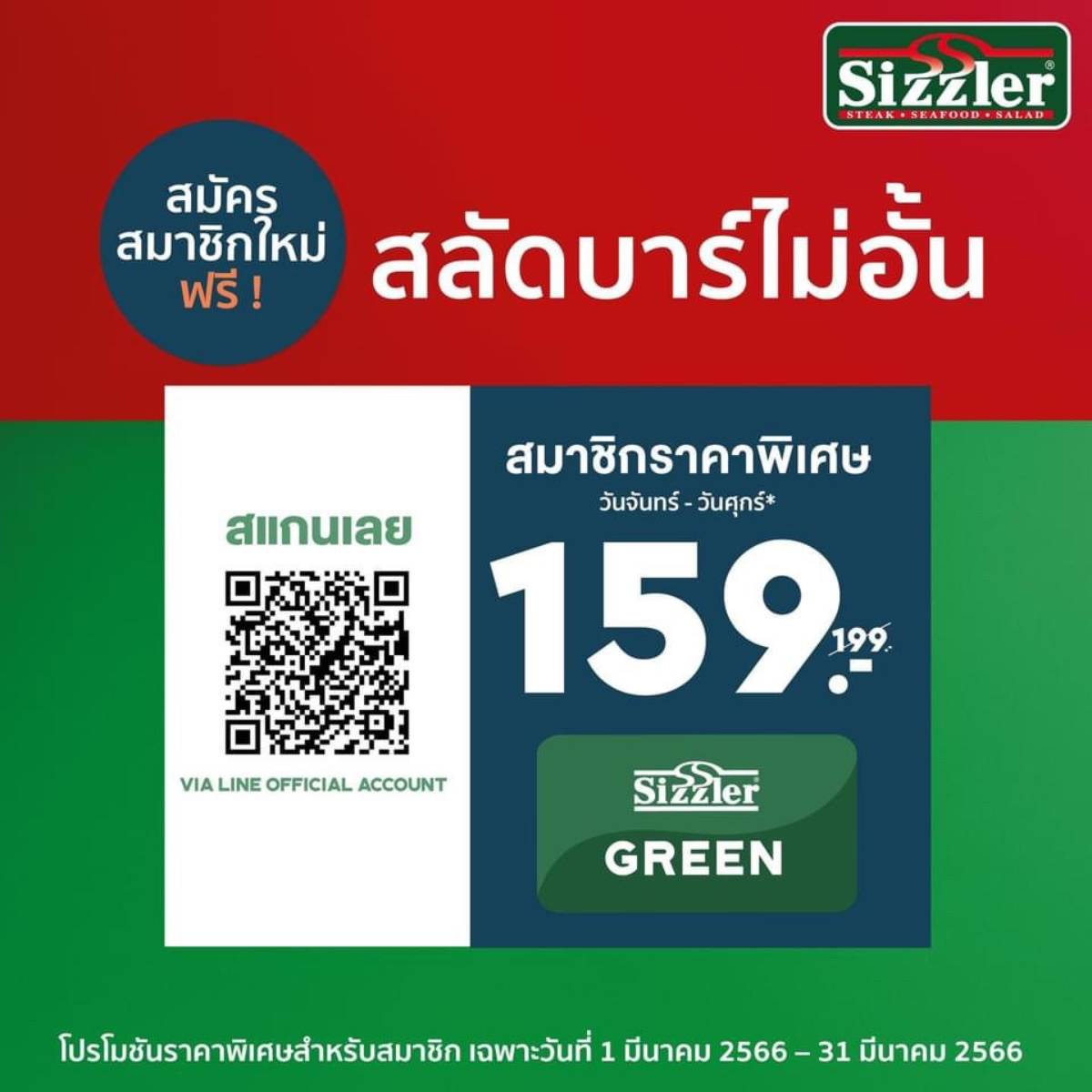 - สมาชิกซิซซ์เล่อร์ ราคาพิเศษ 159 บาท (ราคาปกติ 199 บาท) เฉพาะวันจันทร์ – วันศุกร์ จำกัด 1 สิทธิ์ / สมาชิก / วัน