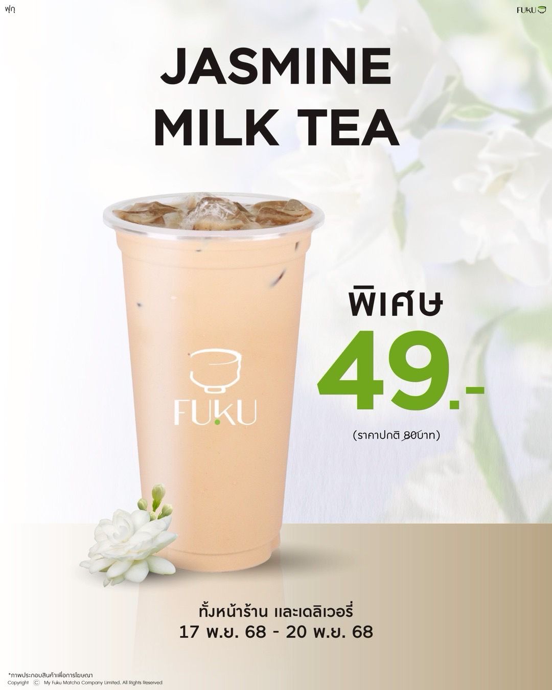 #FUKU #fukumatcha #ชานม #ชานมหอมะลิ #happinessyoucandrink #ฟุกุเท่ากับความอร่อยเข้มข้น