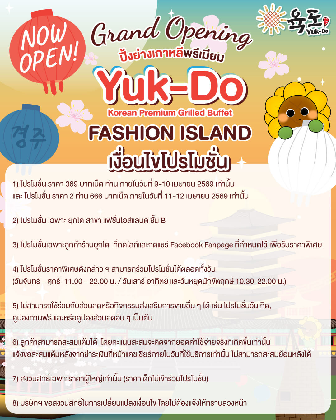 09 Apr 2569ยุกโดจัดฉลองเปิดสาขาใหม่ด้วยโปรเริ่ดๆตลอด 4 วันเต็ม !