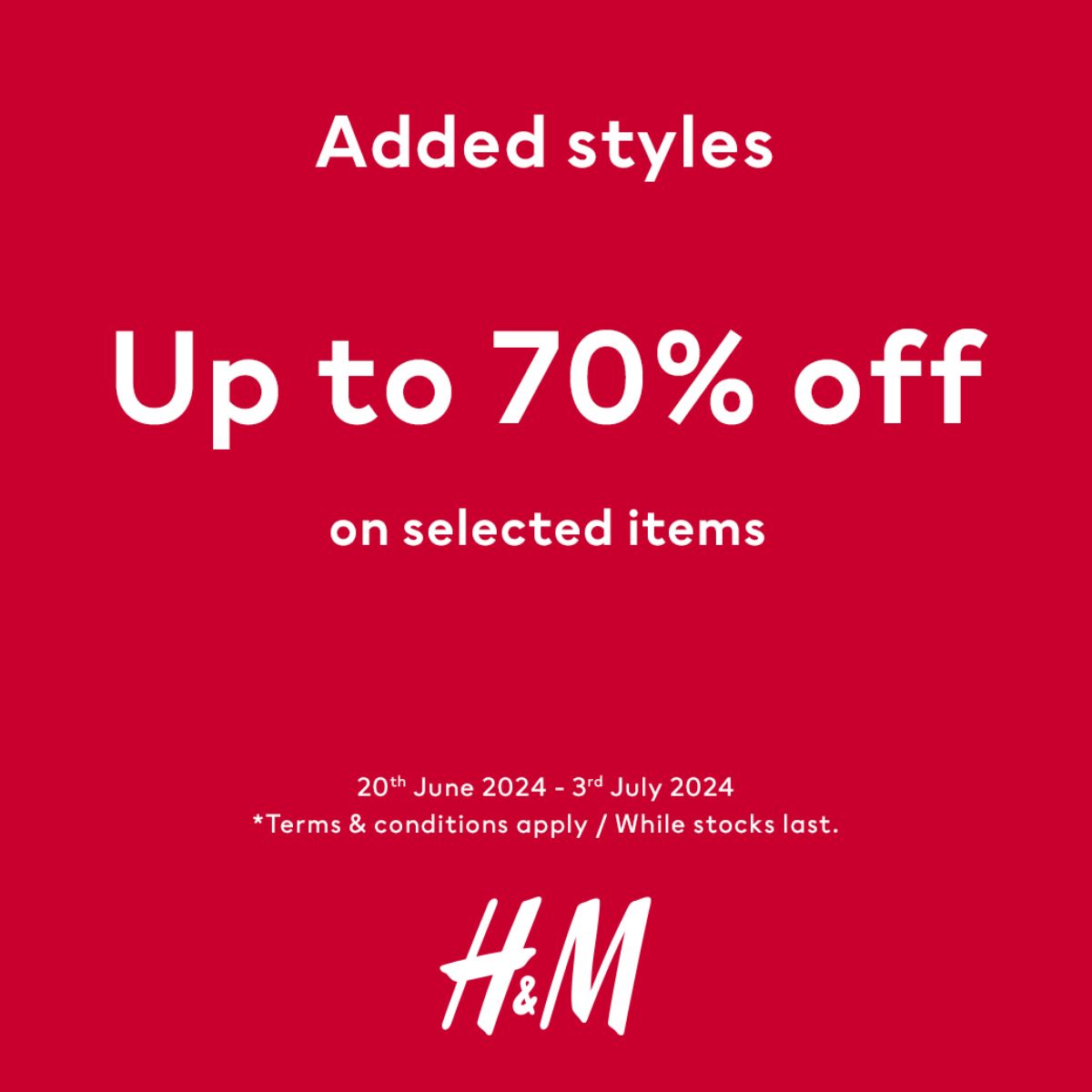 H&M added styles and further reductions now! Enjoy up to 70% off on selected trendy fashion, including workwear, outfits for special occasions, and comfy clothes to relax at home.