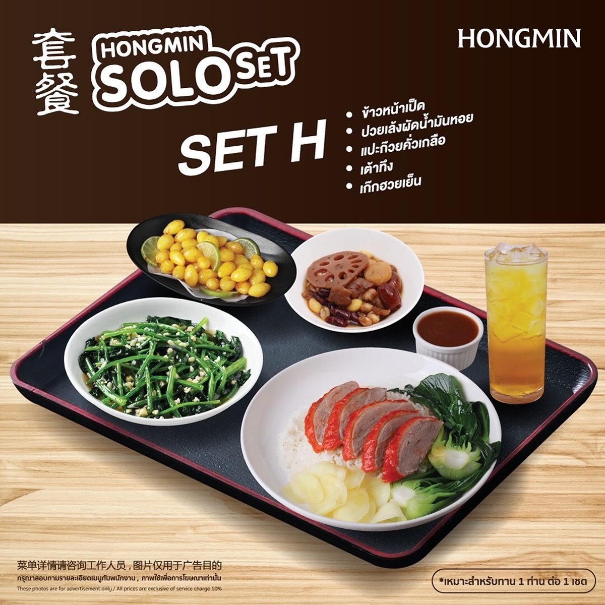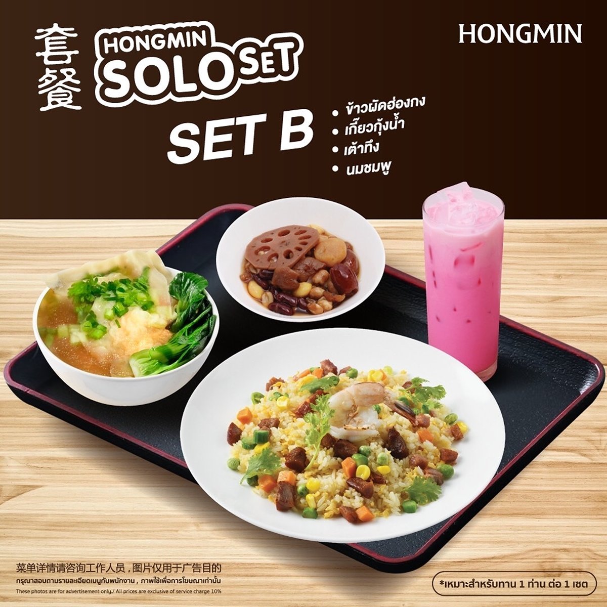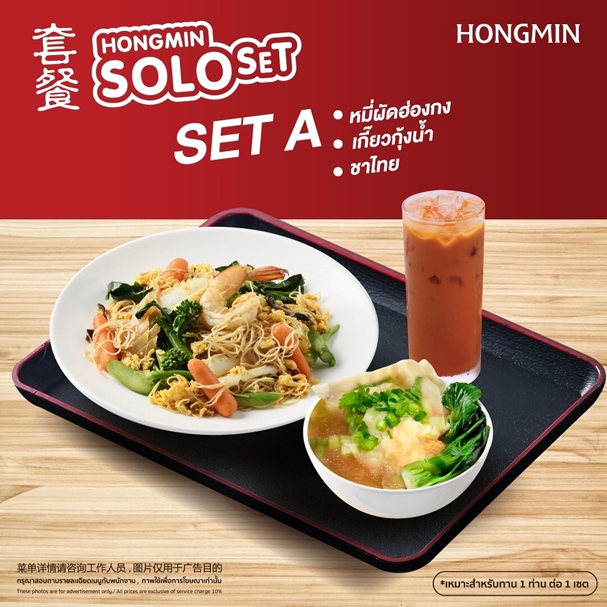 HONGMIN SOLOSET 259 บาท เมนูซิกเนเจอร์ที่อร่อยลงตัว พร้อมให้คุณอิ่มอร่อยแบบครบครันในชุดเดียว เหมาะสำหรับทุกมื้อของคนรักอาหารจีน แค่เลือกเซตที่ใช่ ก็อิ่มฟินได้เลย พิเศษ เพิ่มความสดชื่นกับเครื่องดื่มสุดโปรดที่คุณเลือกได้