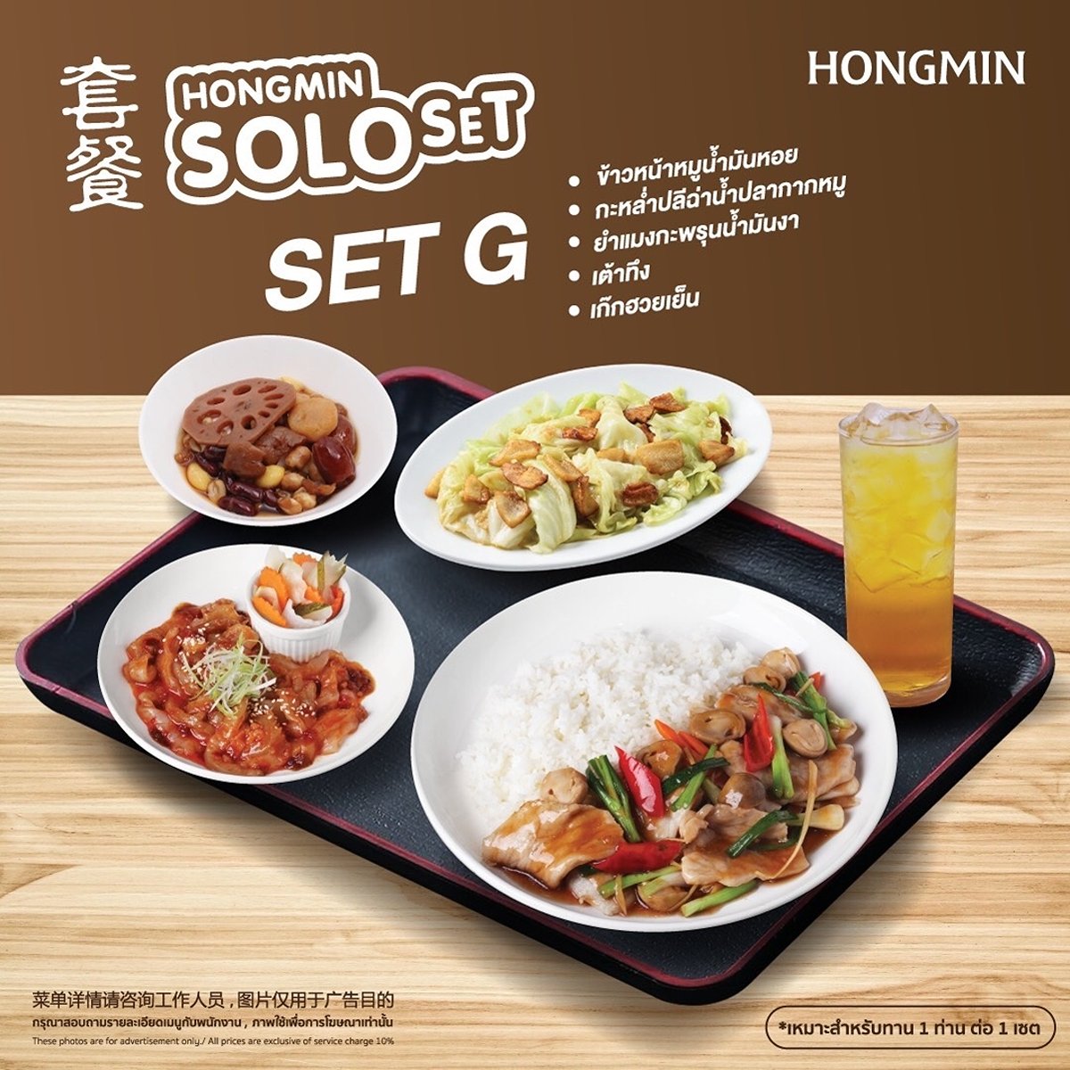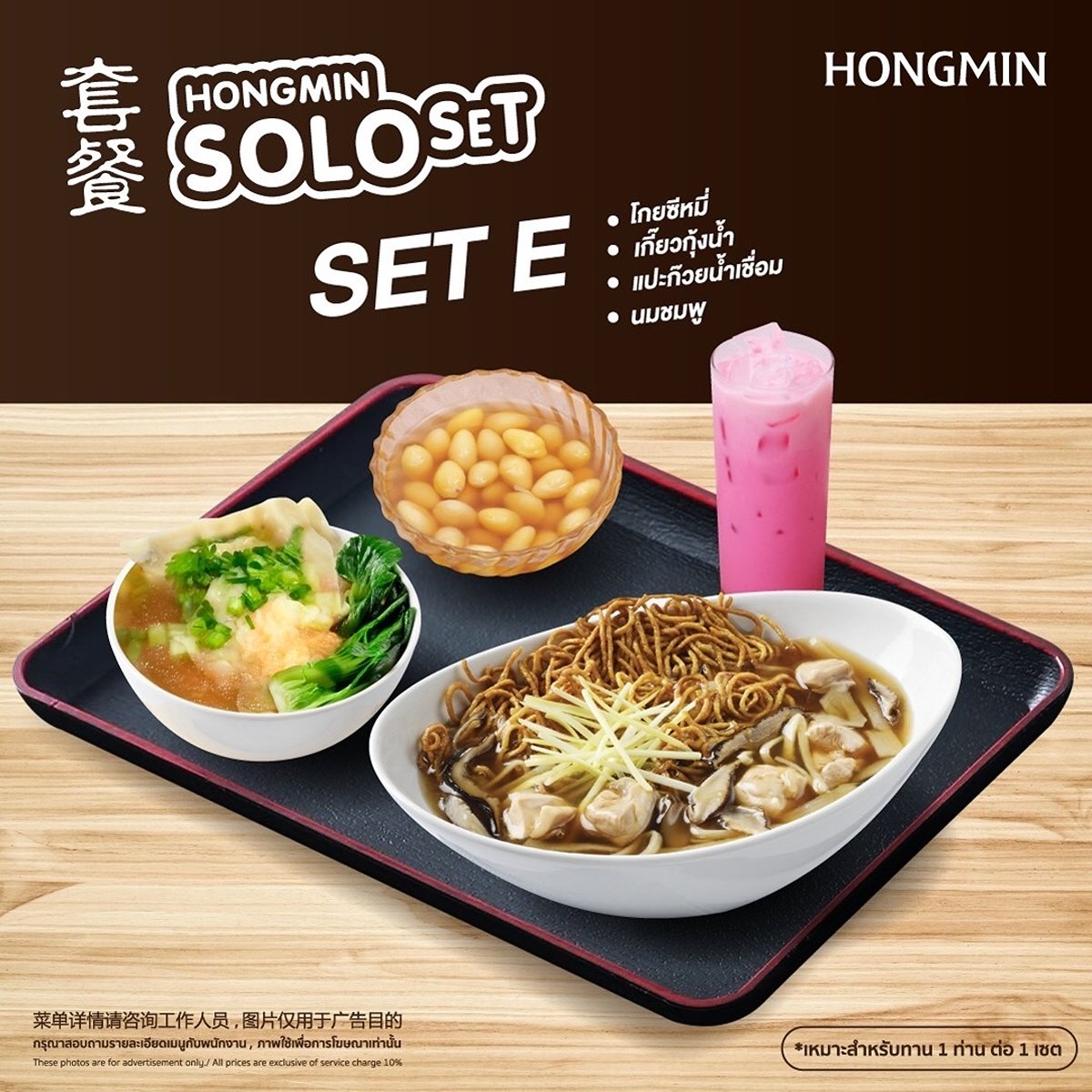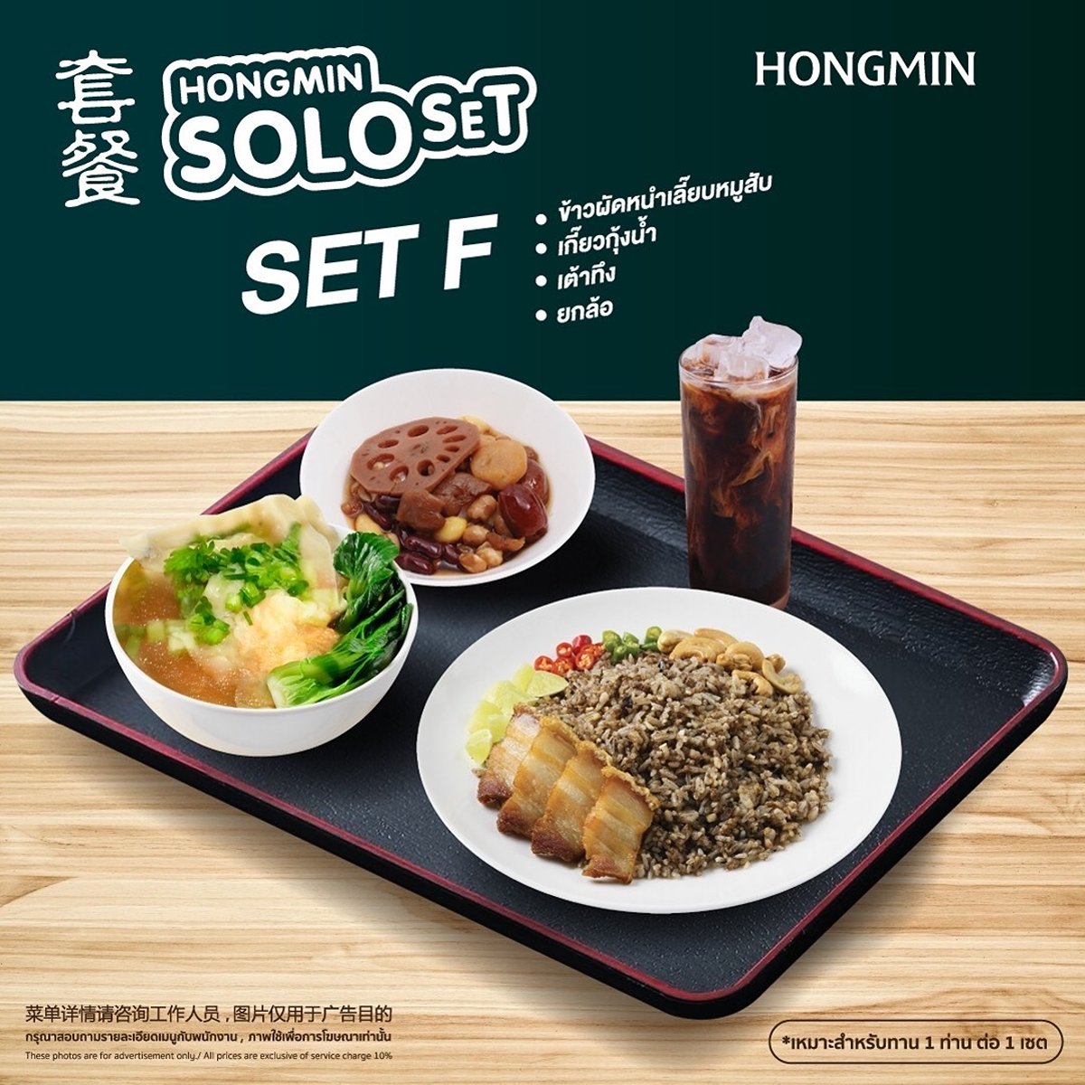 HONGMIN SOLOSET 259 บาท เมนูซิกเนเจอร์ที่อร่อยลงตัว พร้อมให้คุณอิ่มอร่อยแบบครบครันในชุดเดียว เหมาะสำหรับทุกมื้อของคนรักอาหารจีน แค่เลือกเซตที่ใช่ ก็อิ่มฟินได้เลย พิเศษ เพิ่มความสดชื่นกับเครื่องดื่มสุดโปรดที่คุณเลือกได้
