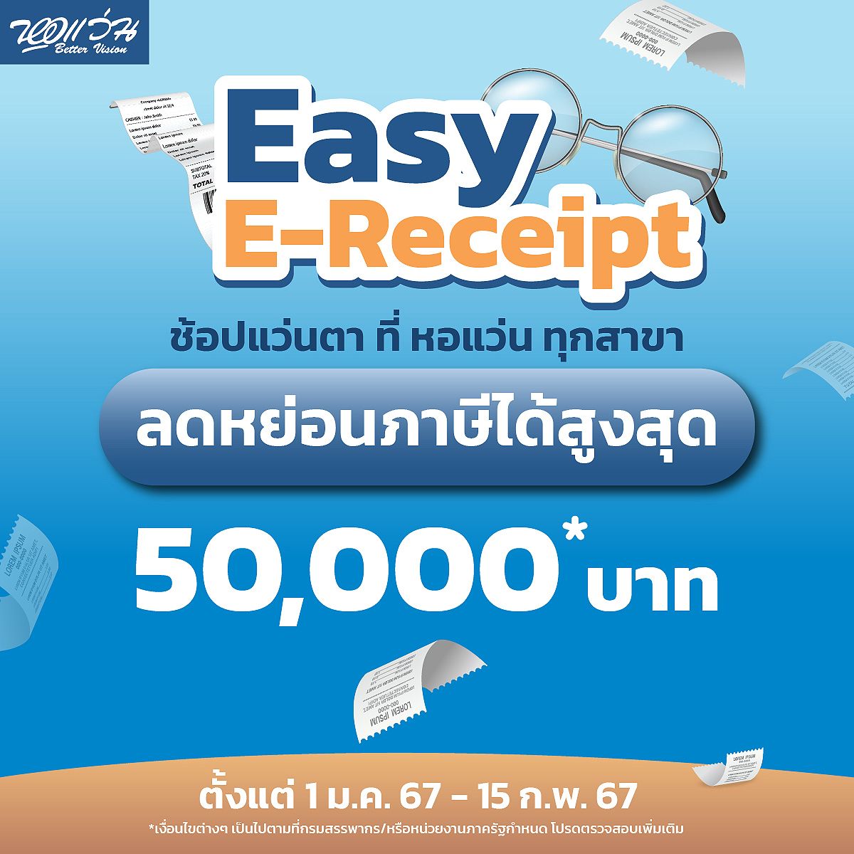 #EasyEReceipt #ลดหย่อนภาษี #หอแว่น #BetterVision #BVAX #ให้หอแว่นดูแลทุกค่าสายตาคุณ #เปลี่ยนเลนส์365วันฟรี