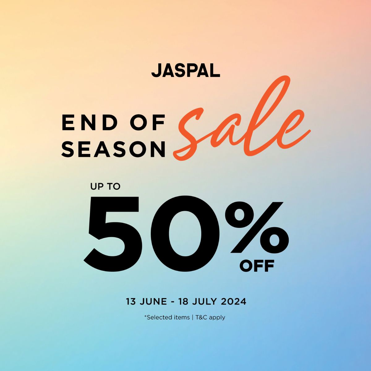 เริ่มแล้วกับโปรโมชั่นพิเศษที่ทุกคนรอคอย! Jaspal End of Season Sale กับส่วนลดสูงสุด 50% ทั้งเสื้อผ้า รองเท้า กระเป๋า และ accessories สำหรับสุภาพสตรีและสุภาพบุรุษ