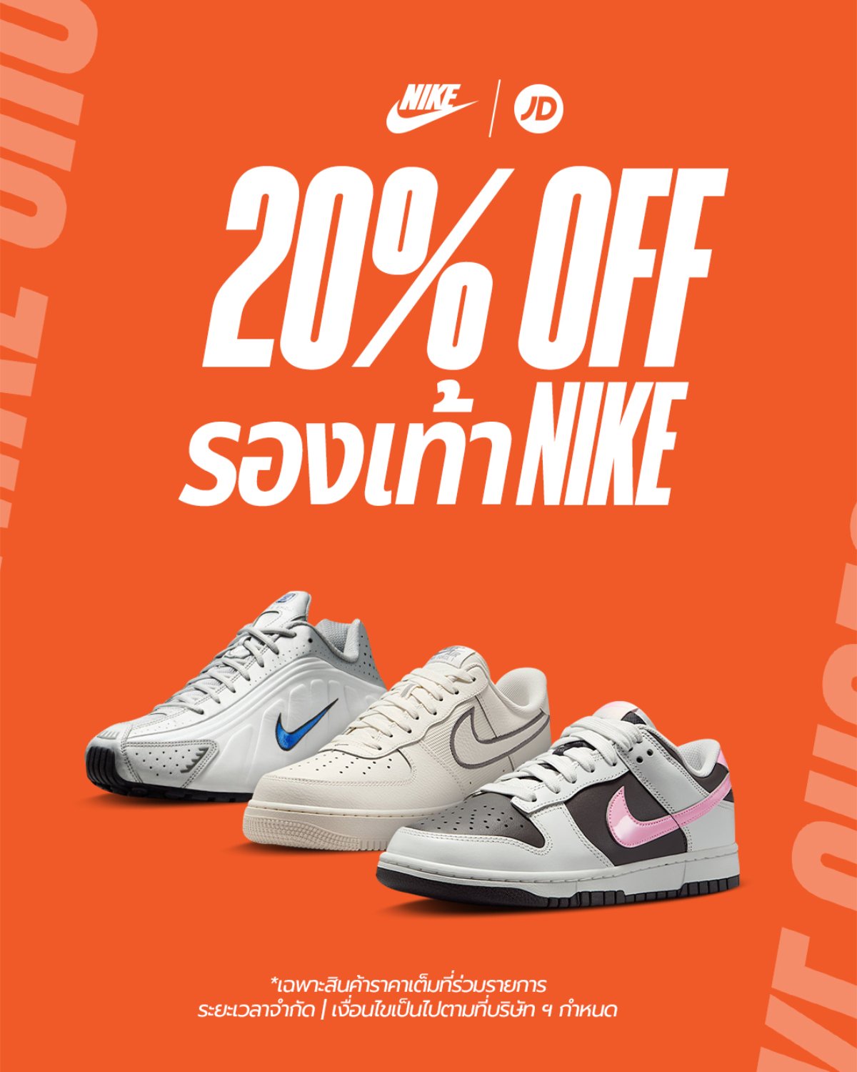 JD Sports จัดโปรเอาใจนักช้อป ลดทันที 20% เมื่อช้อปรองเท้า Nike ราคาเต็มที่ร่วมรายการ เล็งคู่ไหนไว้ อย่ารอช้า