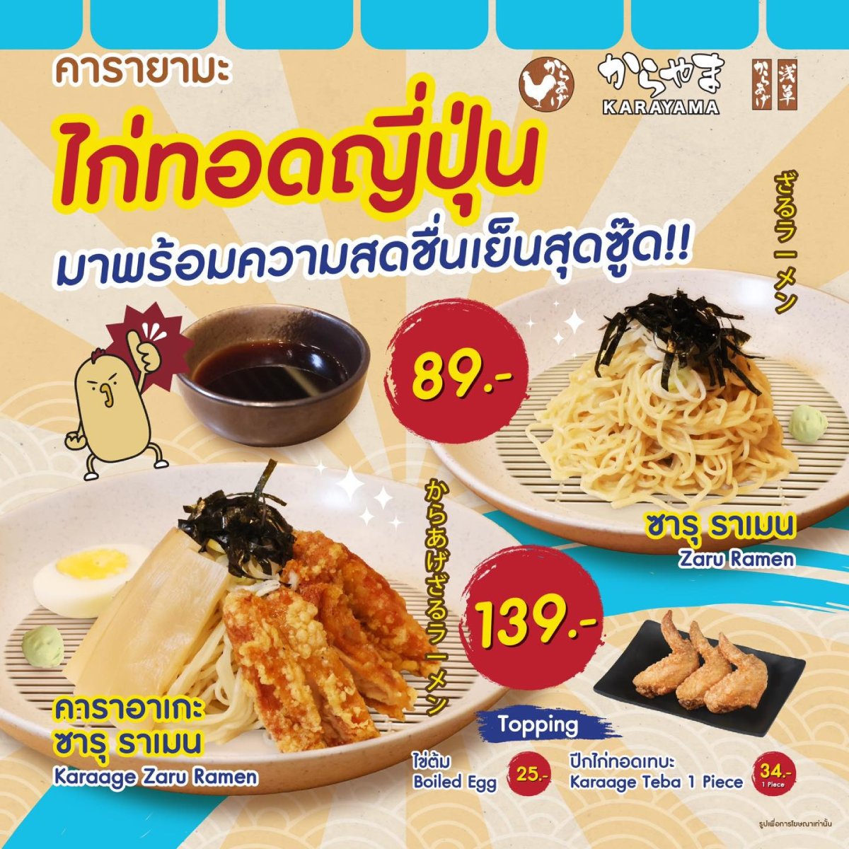 รู้หรือไม่ว่า ไก่ทอดญี่ปุ่น ที่คารายามะคือที่สุด อร่อยเด็ดกว่าใคร แอดมิน มั่นใจเอาหัวเป็นประกัน และ ไก่ทอดญี่ปุ่น คารายามะ มาพร้อมกับความสดชื่นเย็นสุดซู๊ด ทั้ง คาราอาเกะ ซารุราเมน เพียง 139 บาท และ ซารุราเมน เพียง 89 บาท อร่อยมาก แถมราคายังน่ารักด้วย ที่คารายะมะ ชั้น B