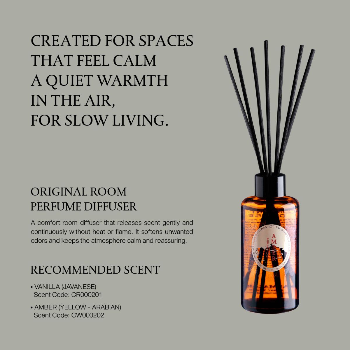 CREATED FOR SPACES THAT FEEL CALM, WITH A QUIET WARMTH IN THE AIR, FOR SLOW LIVING.