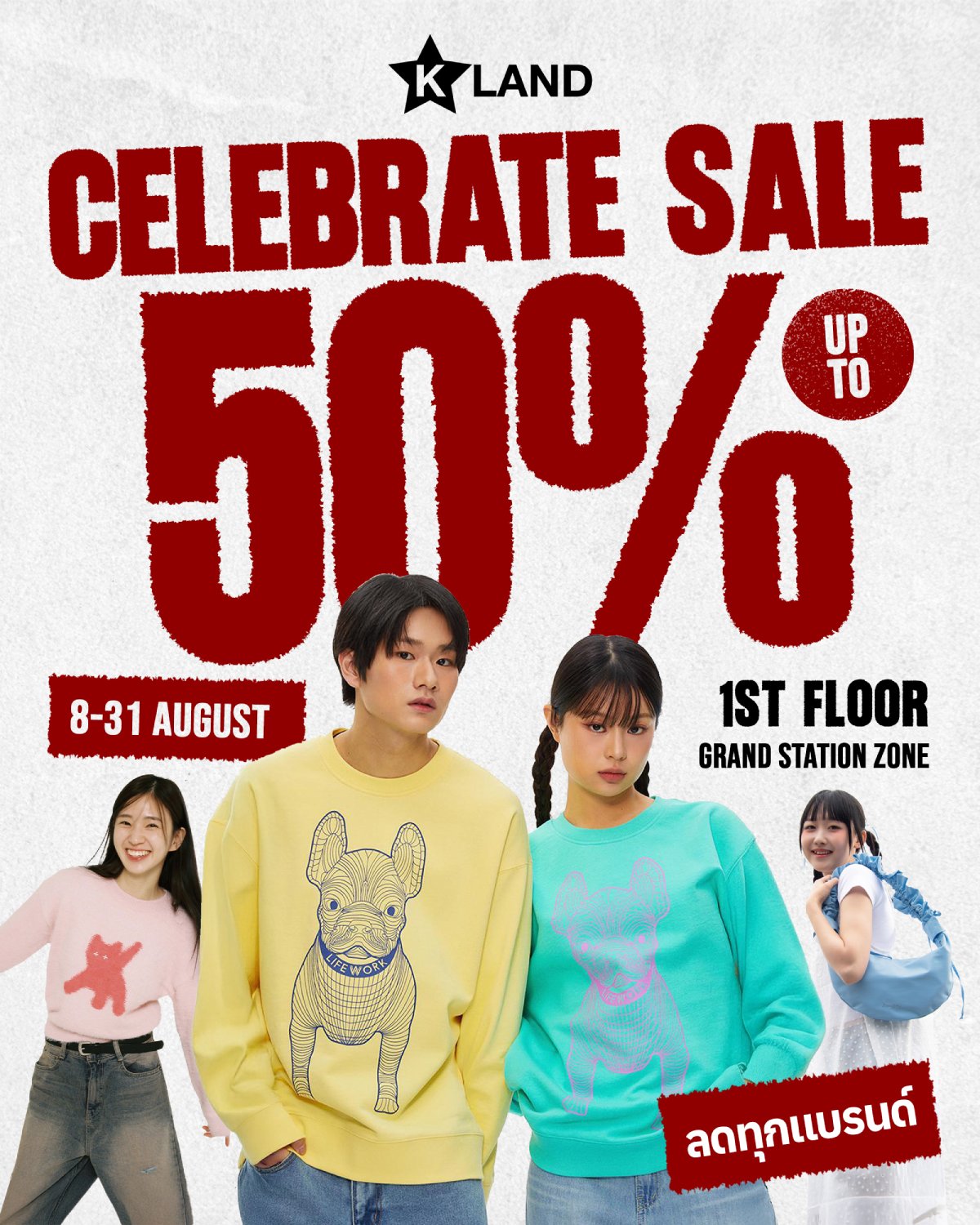 เตรียมพบกับ SALE ครั้งยิ่งใหญ่ของ KLAND CELEBRATE SALE UP TO 50% จัดเต็มแบรนด์ในเครือ KLAND ทั้งเสื้อผ้า รองเท้า และ Accessories ต่างๆมากมาย