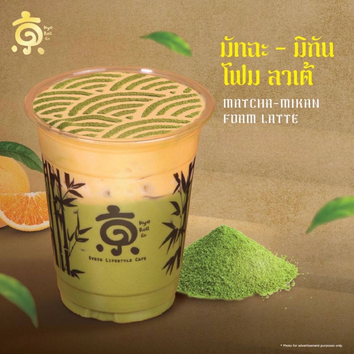 ส้ม ‘มิกัน’ ปั่นสดๆ แก้วต่อแก้ว…ท็อปด้วยวุ้นคันเต็นทำจากสาหร่ายทะเลรสส้ม เคี้ยวหนึบๆ หวานหอมสดชื่น - Matcha-Mikan Foam Latte