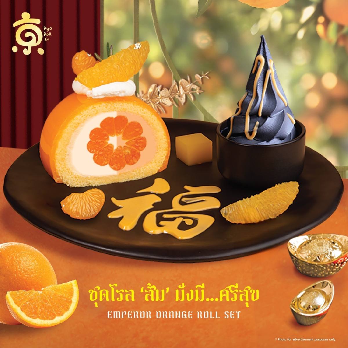 โรลส้มมหามงคล…ยกส้มตรุษจีนปีนี้ ด้วยโรลส้ม 3 สายพันธุ์ สอดไส้ดับเบิ้ลครีมสด รสส้ม ‘มิกัน’ จากญี่ปุ่น อัดแน่นส้ม ‘ซาถัง’ จักรพรรดิจากไต้หวันกว่า 5 ลูก ท็อปปิ้งส้มสดและช็อกโกแลตทองคำทานได้ ส่งมอบในตะกร้าจักสานสีแดงมงคล - Emperor Orange Roll Set