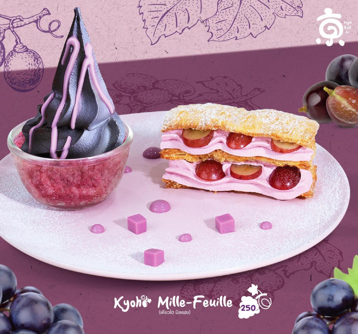 - Mille-Feuille เซตพายกรอบสไตล์ฝรั่งเศส สลับชั้นครีมเคียวโฮ และองุ่นเรดเกรป พร้อม ‘เคียวโฮคากิโกริ’