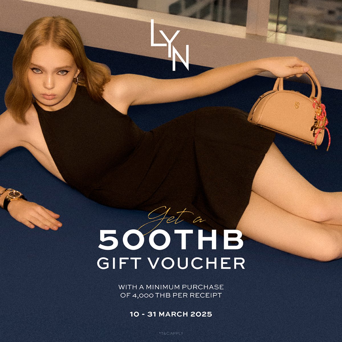 โปรโมชั่นสุดพิเศษจาก LYN เมื่อช้อปสินค้าราคาปกติครบ 4,000 บาท รับฟรี Gift Voucher มูลค่า 500 บาท สำหรับซื้อสินค้าครั้งถัดไป มูลค่า 2,500 บาท
