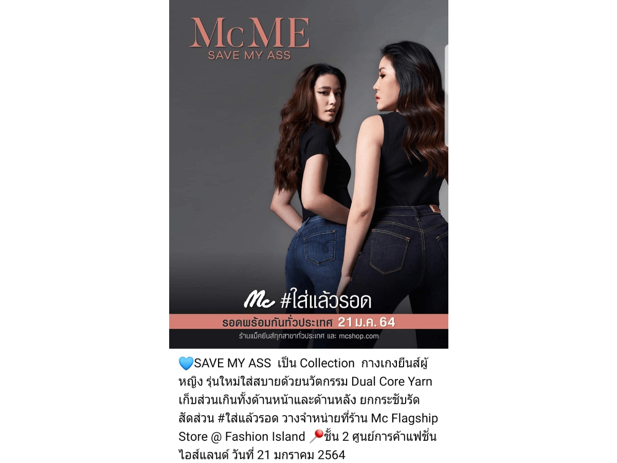 วางจำหน่ายที่ร้าน Mc Flagship Store @ Fashion Island วันที่ 15 มกราคม 2564 - SAVE MY ASS เป็น Collection กางเกงยีนส์ผู้หญิง รุ่นใหม่ใส่สบายด้วยนวัตกรรม Dual Core Yarn เก็บส่วนเกินทั้งด้านหน้าและด้านหลัง ยกกระชับรัดสัดส่วน #ใส่แล้วรอด