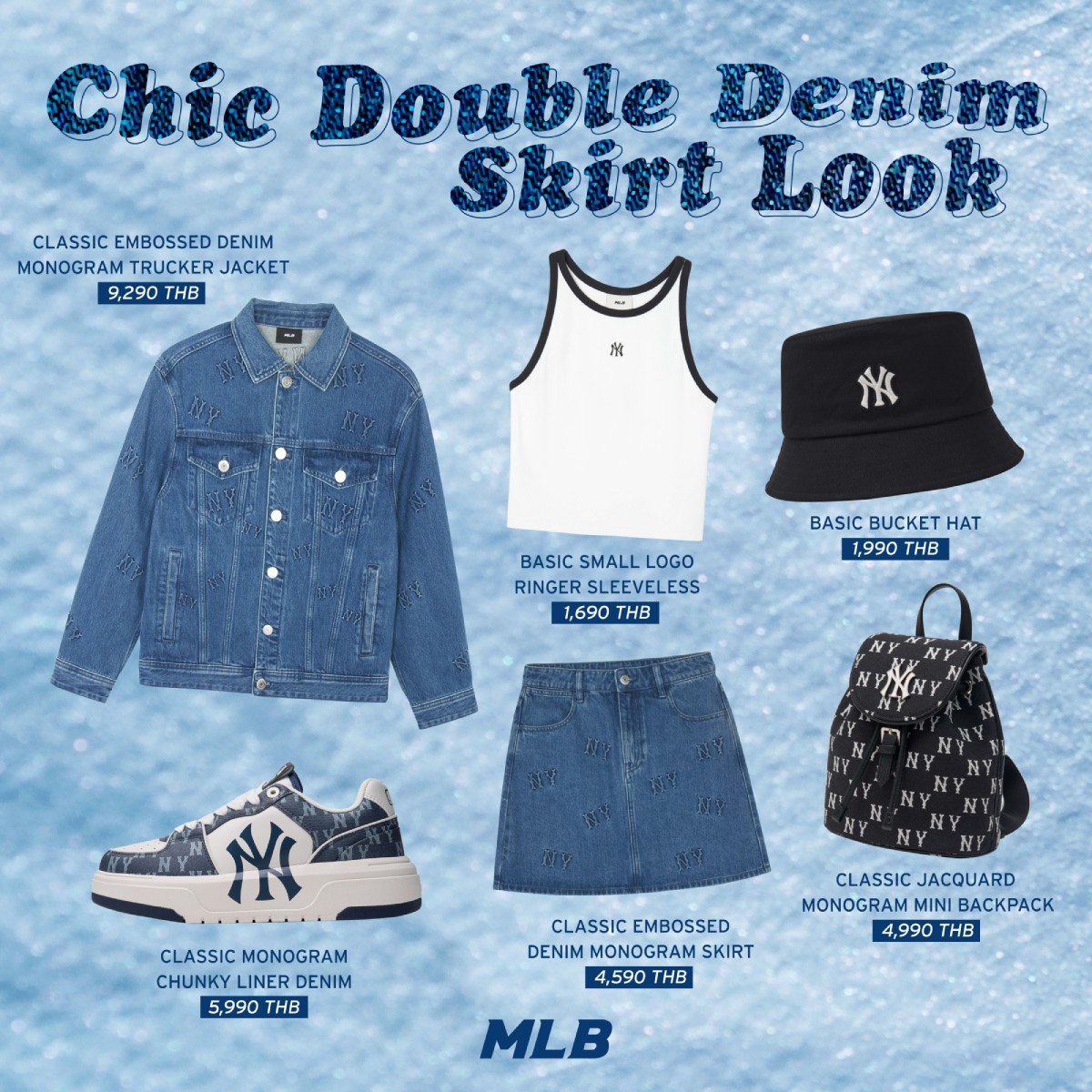 ชวนมาแมทช์ลุคหัวจรดเท้าด้วยไอเทมยีนส์สไตล์ MLB คอลใหม่ล่าสุด! จัดเต็มครบทุกไอเทม ทั้งเสื้อ กางเกง ชุดเดรส รวมไปถึงแอคเซสซอรี่ อย่างหมวก กระเป๋า และรองเท้า ที่จะช่วยเติมเต็มลุคคุมธีมเดนิมทั้งตัว!! แมทช์ง่ายไม่มีเอ้าท์